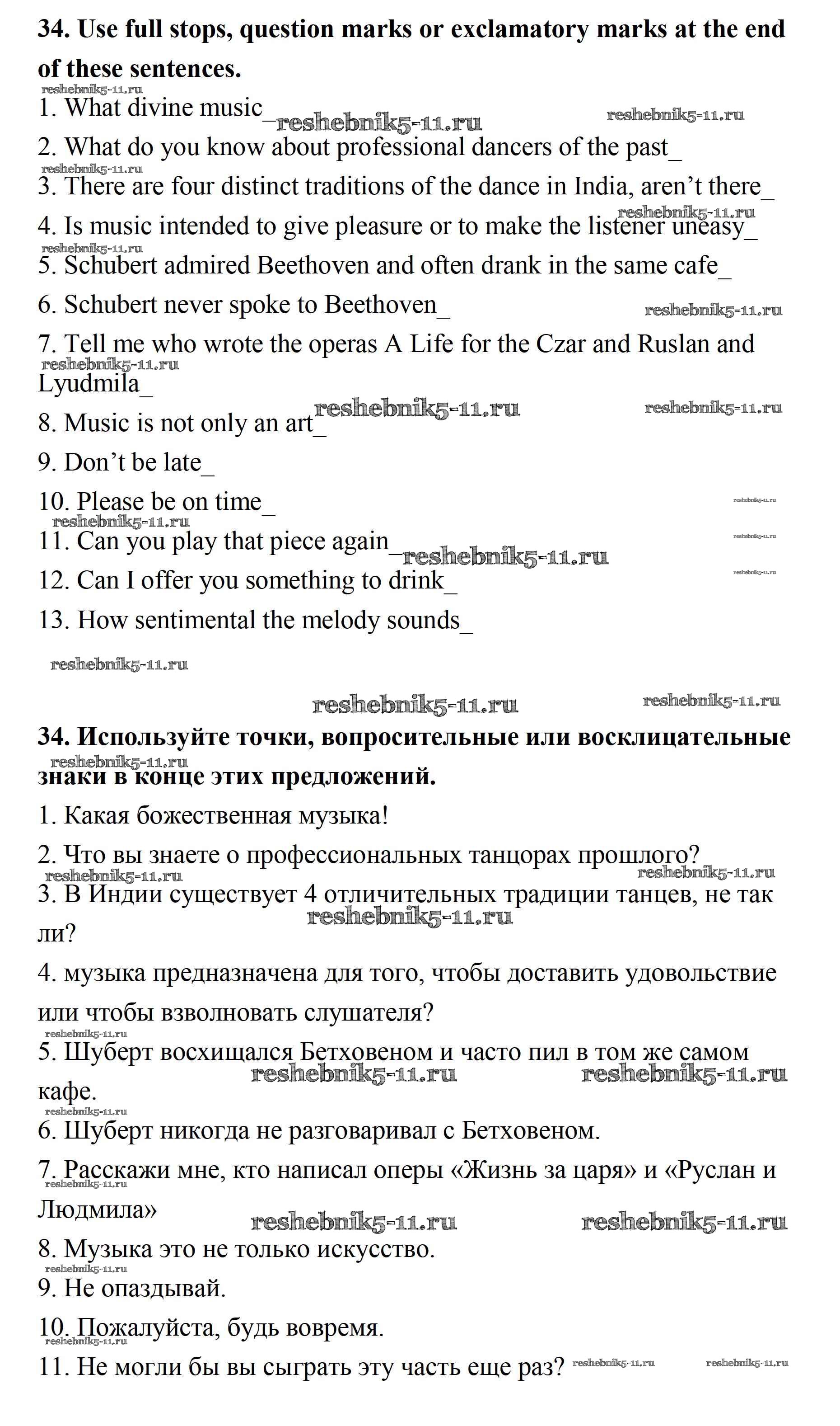 Готовая домашняя работа с ответами по Английскому языку за 11 класс Афанасьева, Михеева Учебник Углубленный уровень Просвещение 2015 ФГОС - Unit 1. Sounds of Music 34