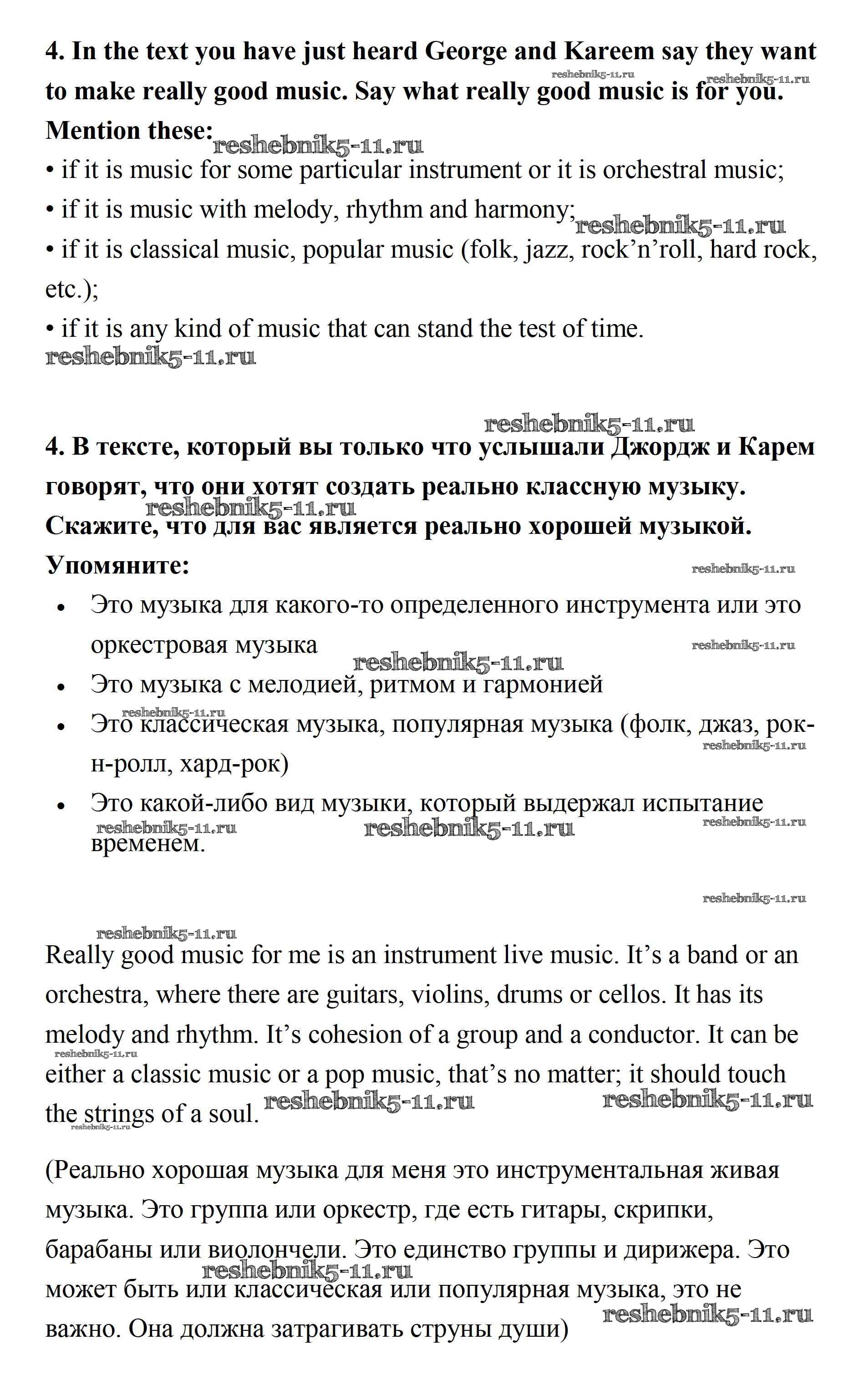 Готовая домашняя работа с ответами по Английскому языку за 11 класс Афанасьева, Михеева Учебник Углубленный уровень Просвещение 2015 ФГОС - Unit 1. Sounds of Music 4