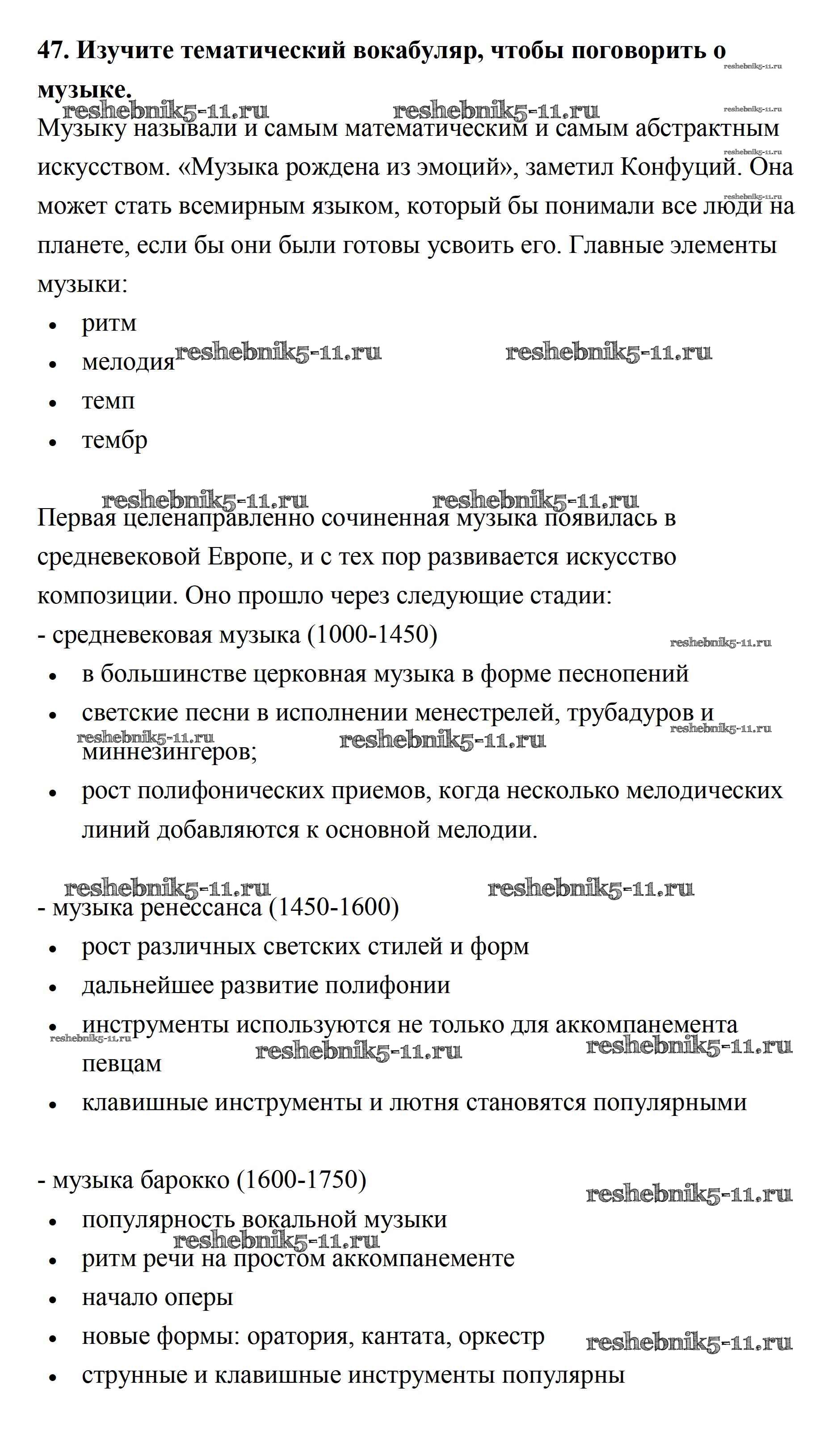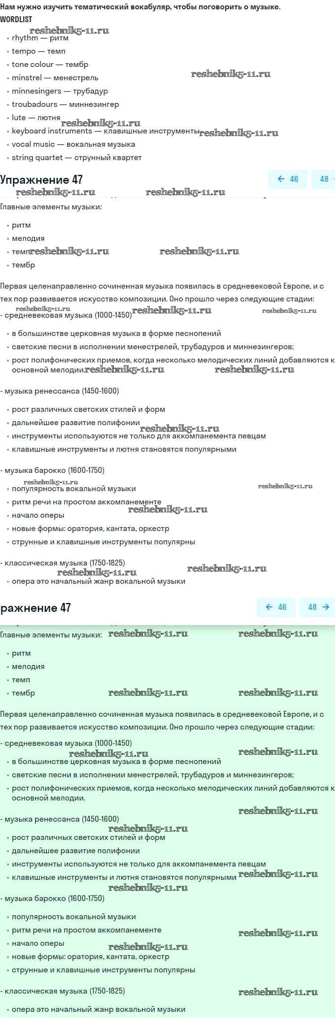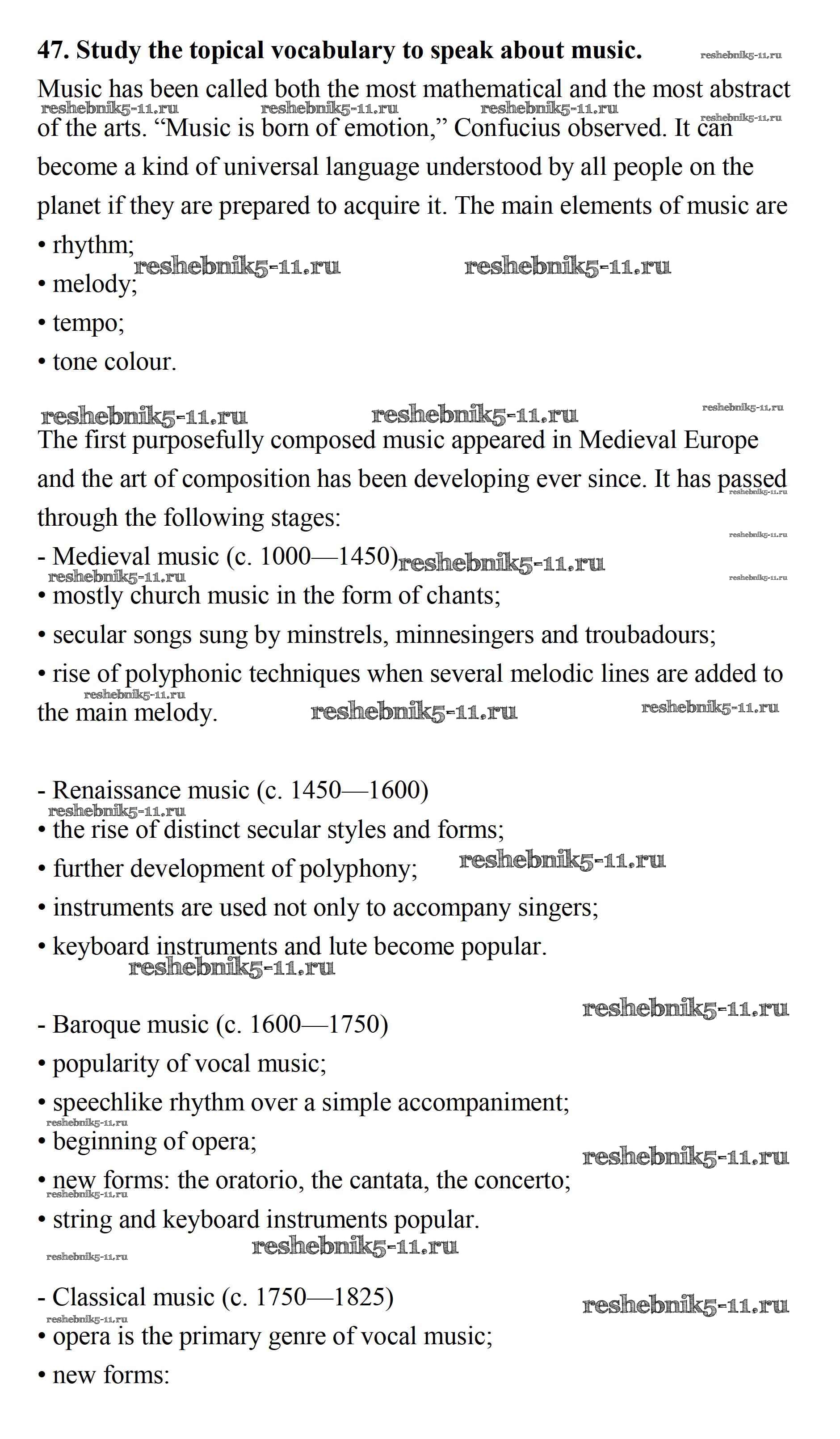 Готовая домашняя работа с ответами по Английскому языку за 11 класс Афанасьева, Михеева Учебник Углубленный уровень Просвещение 2015 ФГОС - Unit 1. Sounds of Music 47