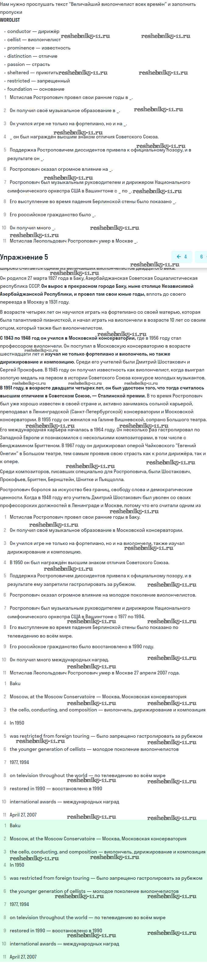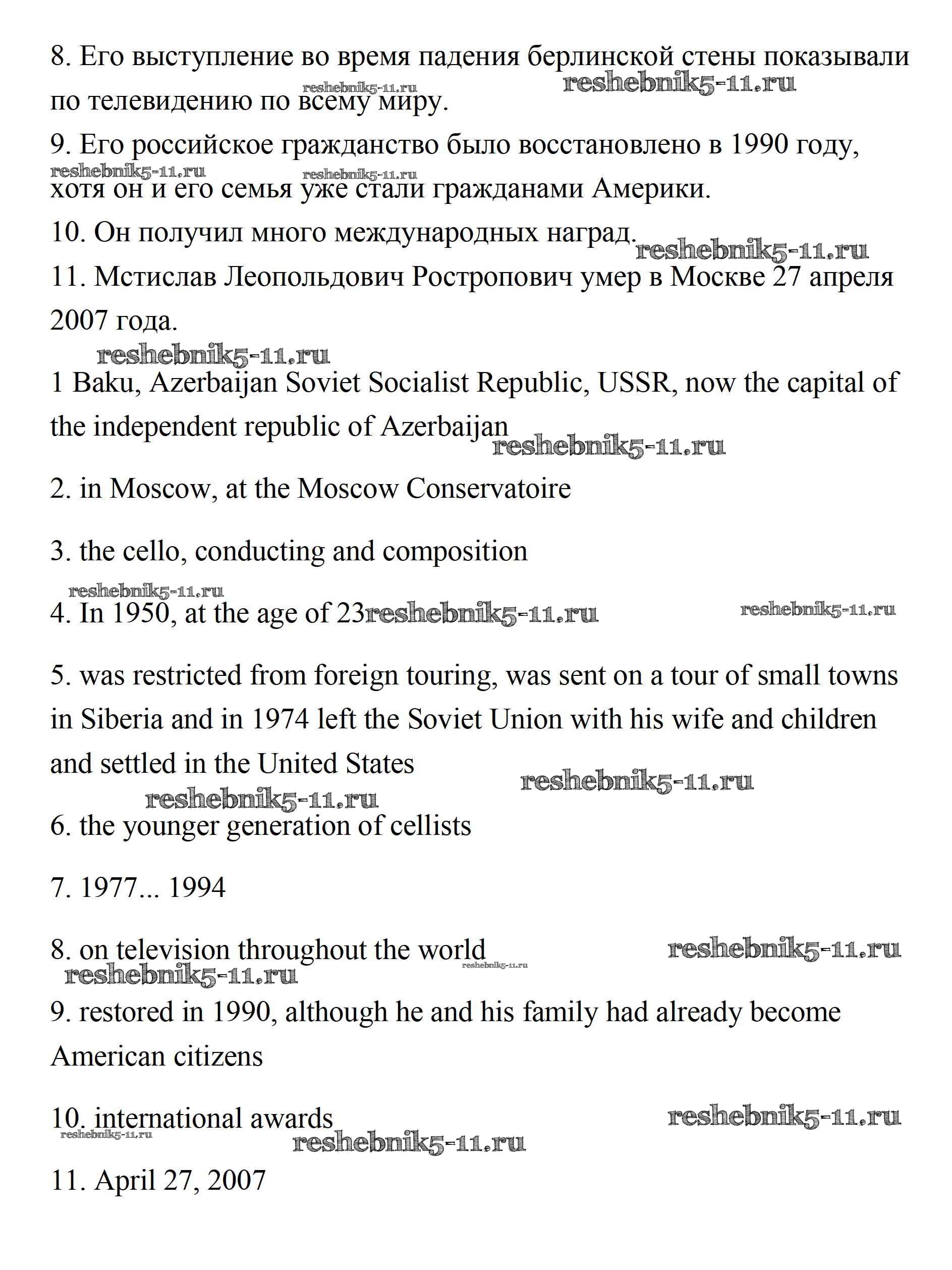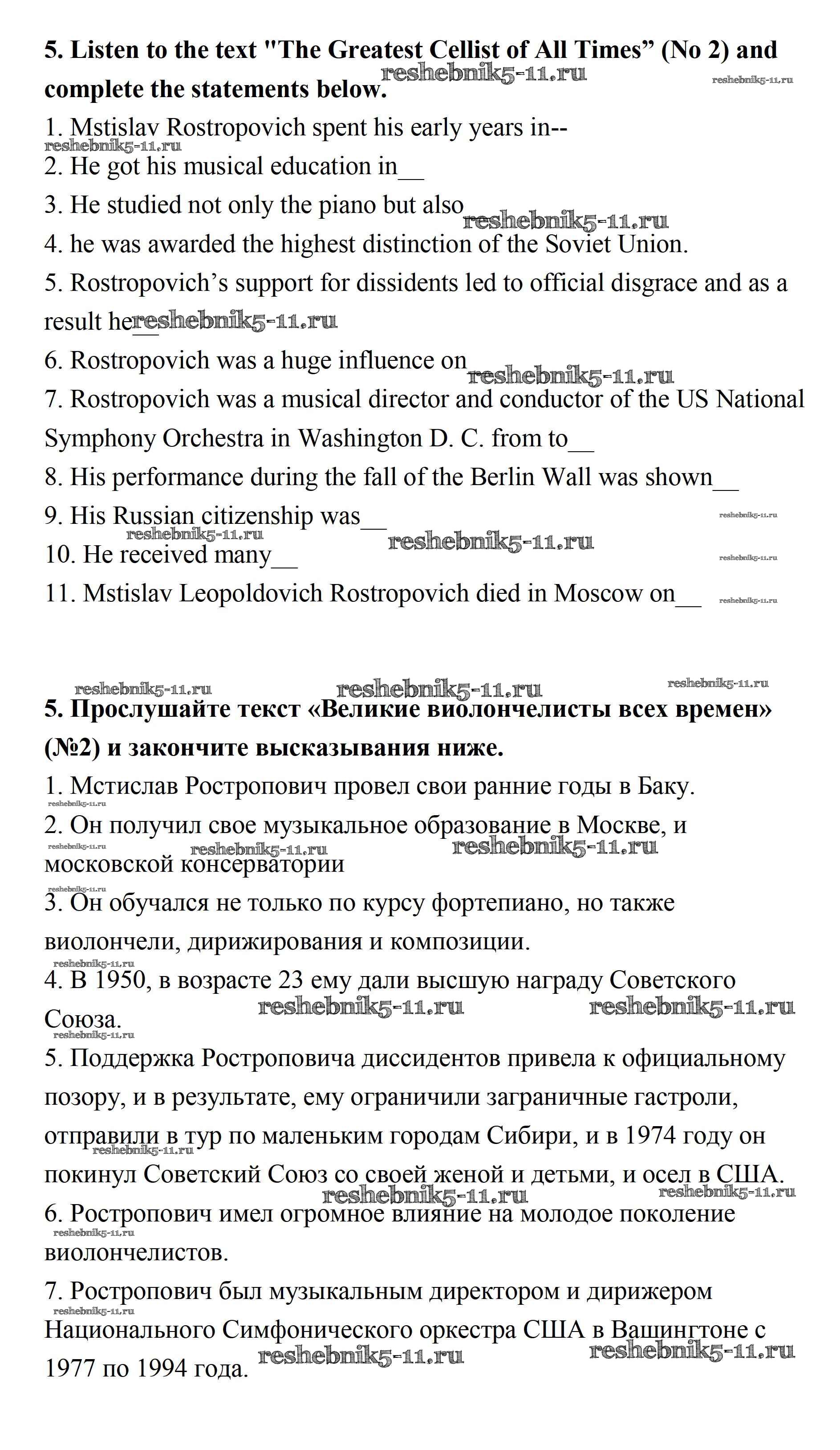 Готовая домашняя работа с ответами по Английскому языку за 11 класс Афанасьева, Михеева Учебник Углубленный уровень Просвещение 2015 ФГОС - Unit 1. Sounds of Music 5