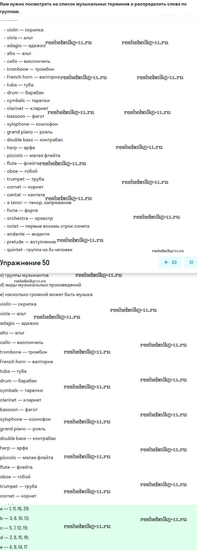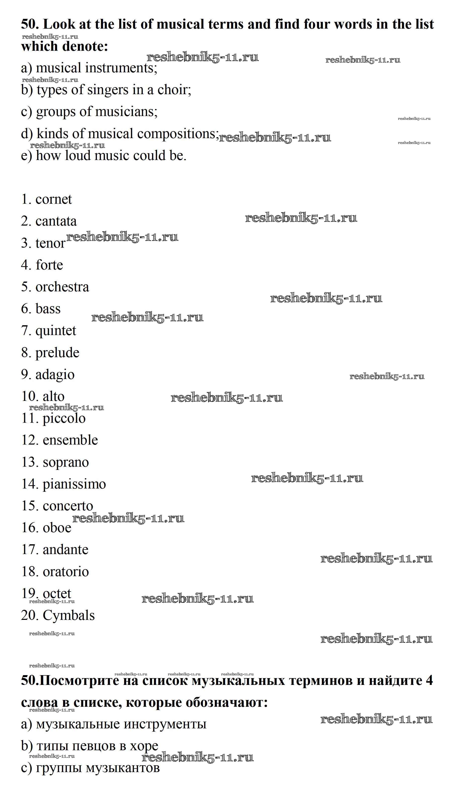Готовая домашняя работа с ответами по Английскому языку за 11 класс Афанасьева, Михеева Учебник Углубленный уровень Просвещение 2015 ФГОС - Unit 1. Sounds of Music 50