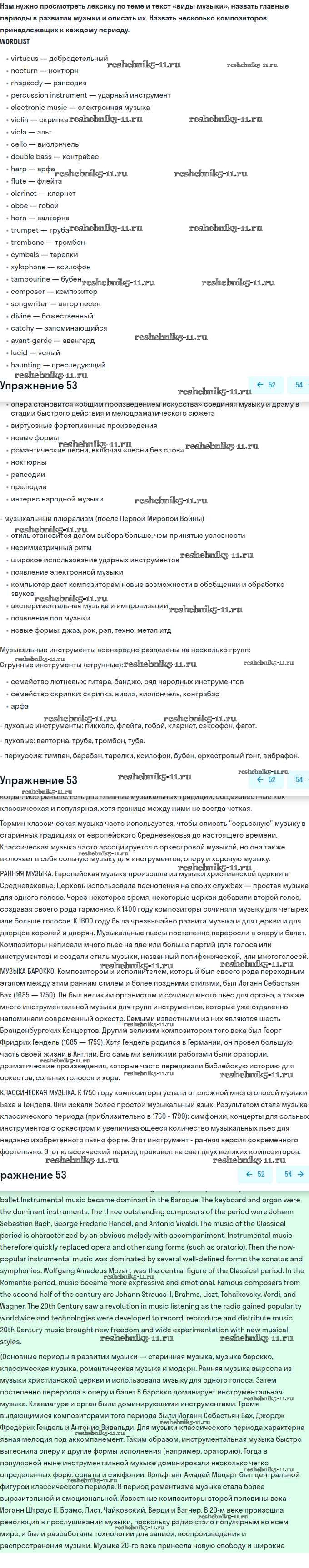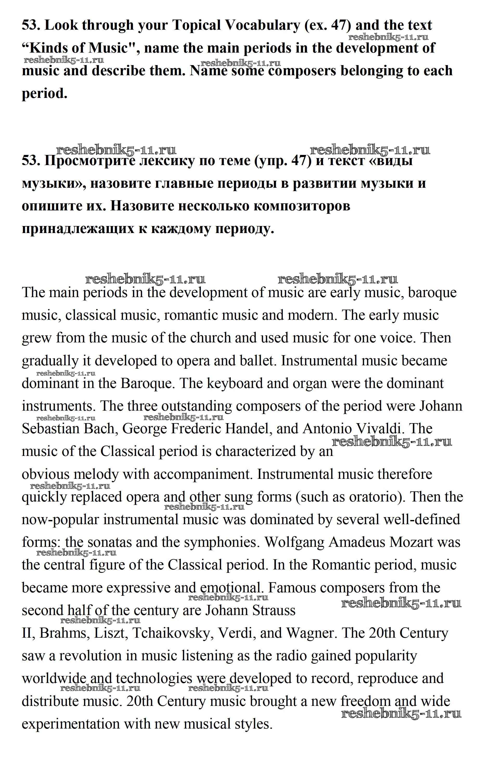 Готовая домашняя работа с ответами по Английскому языку за 11 класс Афанасьева, Михеева Учебник Углубленный уровень Просвещение 2015 ФГОС - Unit 1. Sounds of Music 53