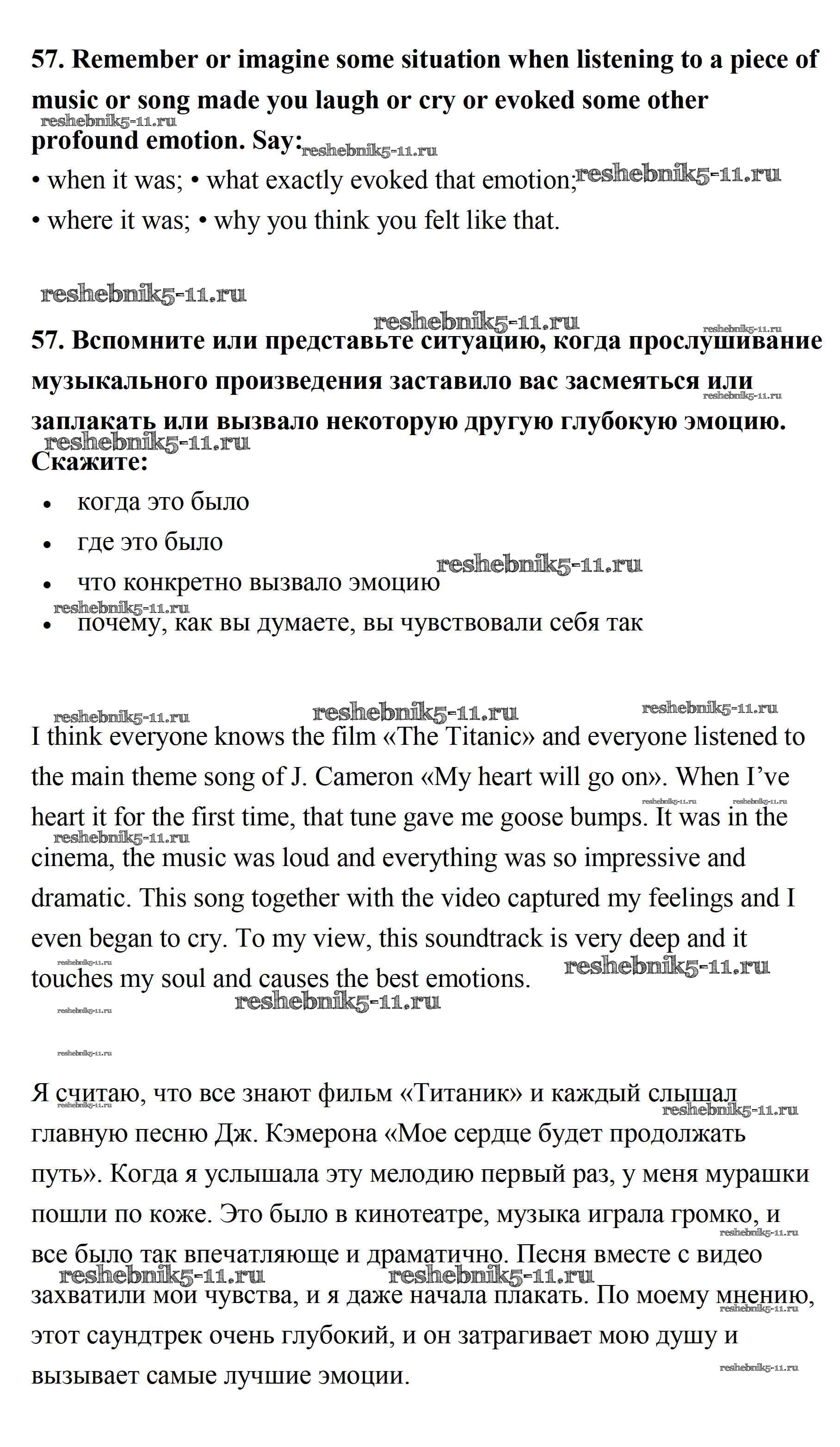Готовая домашняя работа с ответами по Английскому языку за 11 класс Афанасьева, Михеева Учебник Углубленный уровень Просвещение 2015 ФГОС - Unit 1. Sounds of Music 57