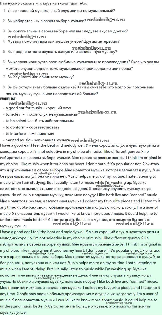 Решебник №2 / unit 1. sounds of music / 58