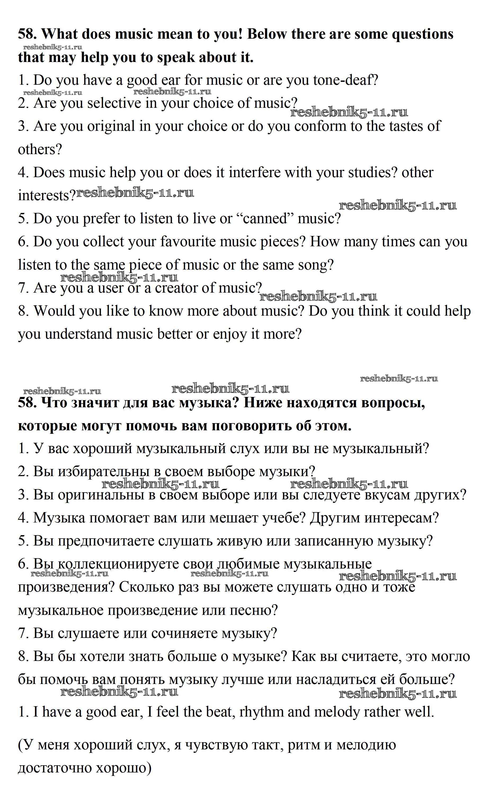 Готовая домашняя работа с ответами по Английскому языку за 11 класс Афанасьева, Михеева Учебник Углубленный уровень Просвещение 2015 ФГОС - Unit 1. Sounds of Music 58