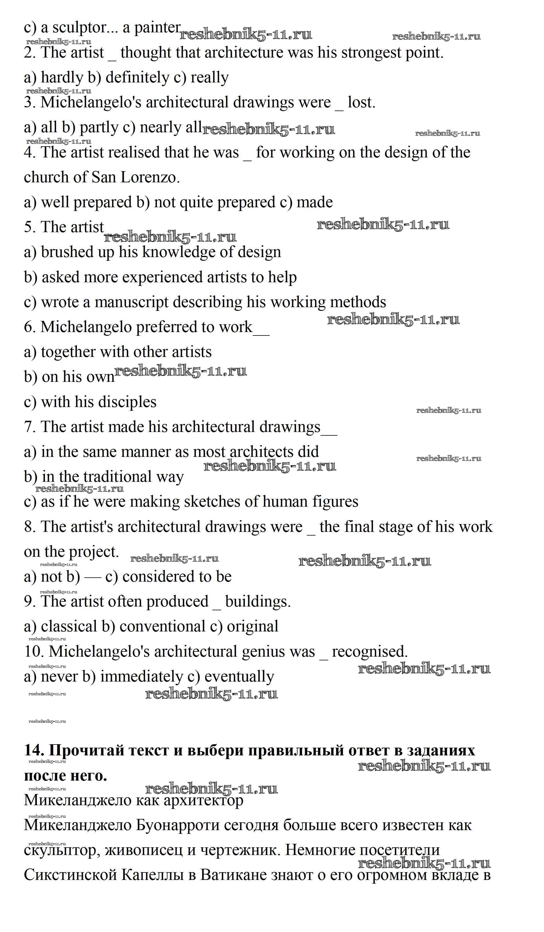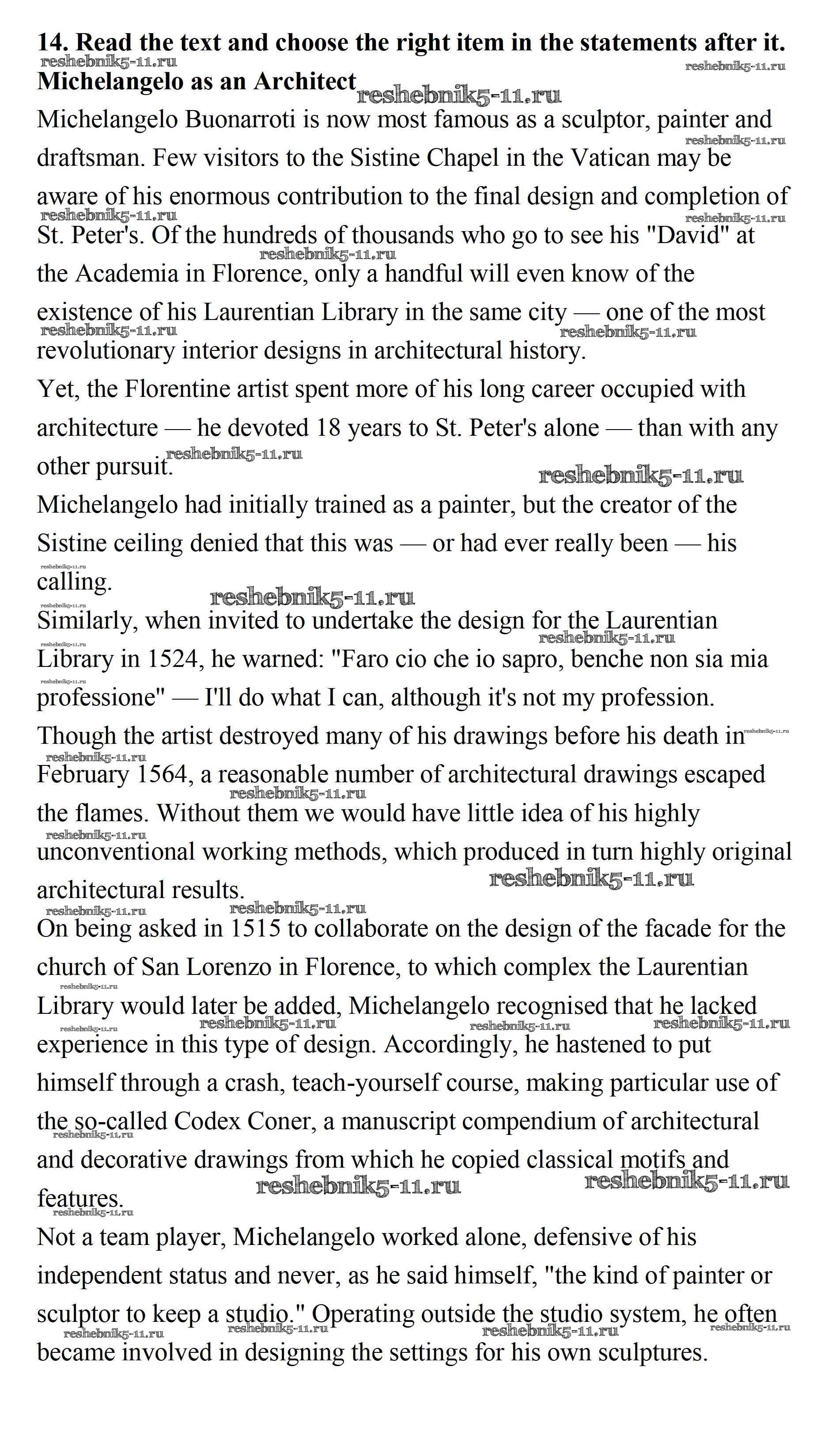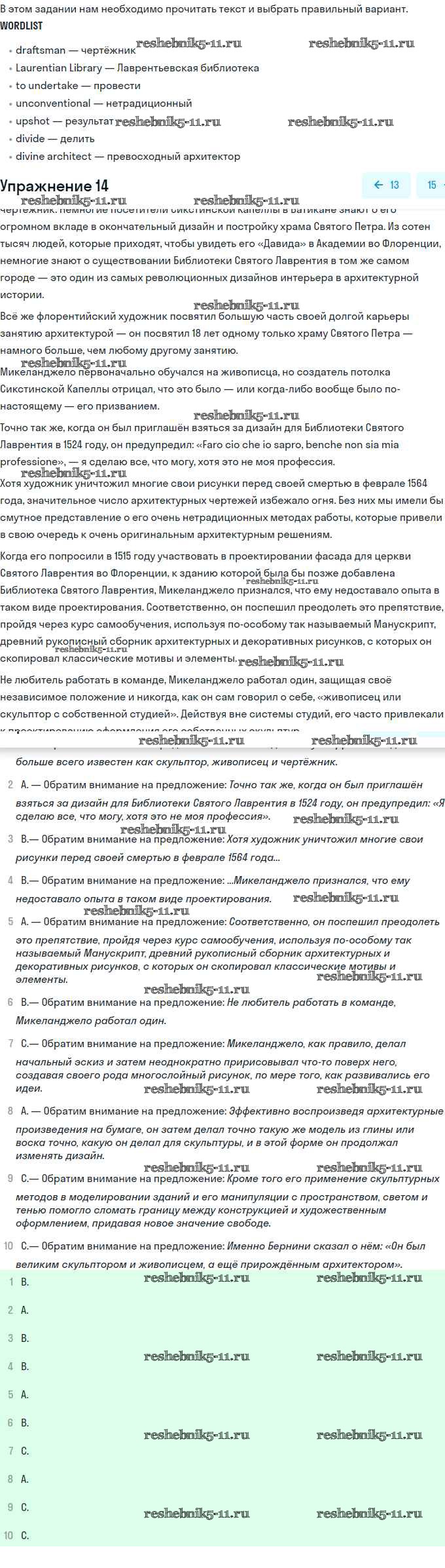 Готовая домашняя работа с ответами по Английскому языку за 11 класс Афанасьева, Михеева Учебник Углубленный уровень Просвещение 2015 ФГОС - Unit 2. Town and Its Architecture 14