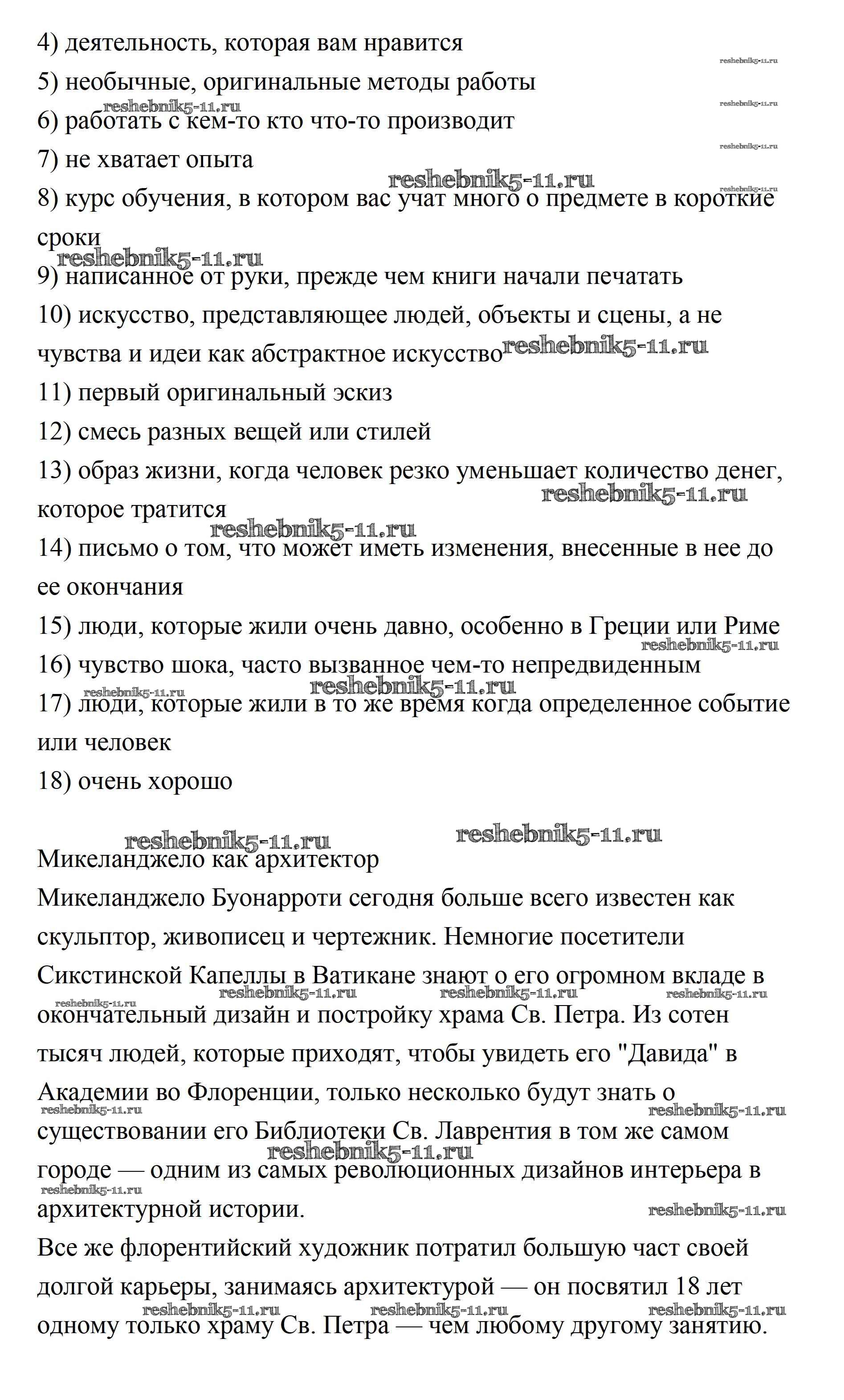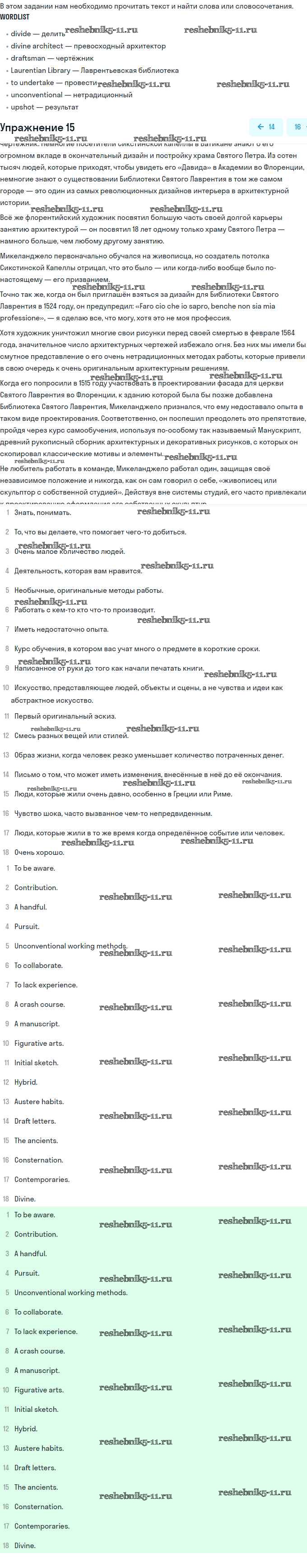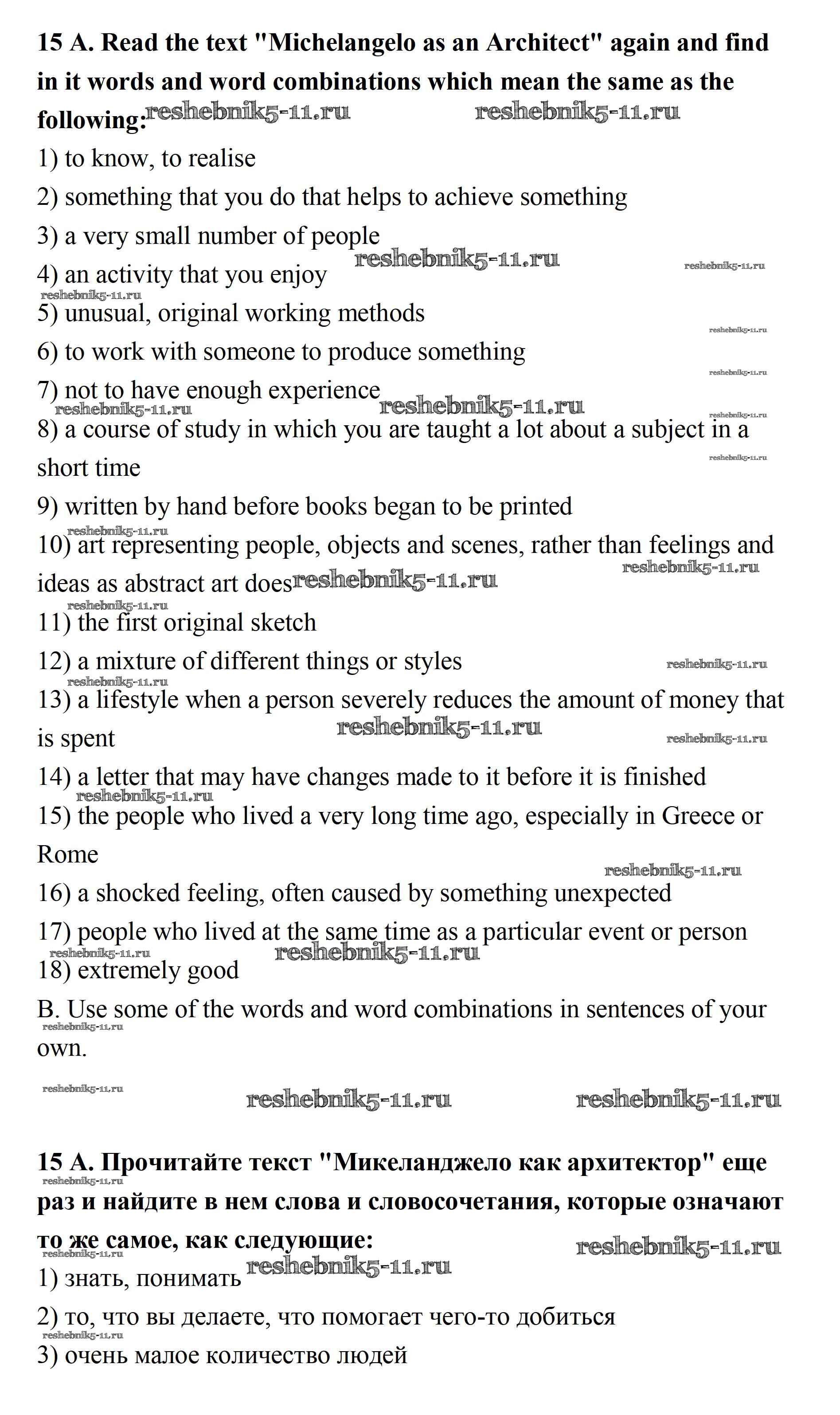 Готовая домашняя работа с ответами по Английскому языку за 11 класс Афанасьева, Михеева Учебник Углубленный уровень Просвещение 2015 ФГОС - Unit 2. Town and Its Architecture 15