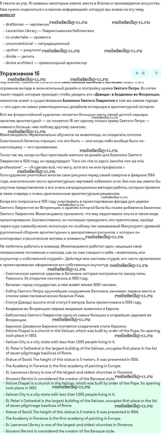Готовая домашняя работа с ответами по Английскому языку за 11 класс Афанасьева, Михеева Учебник Углубленный уровень Просвещение 2015 ФГОС - Unit 2. Town and Its Architecture 16