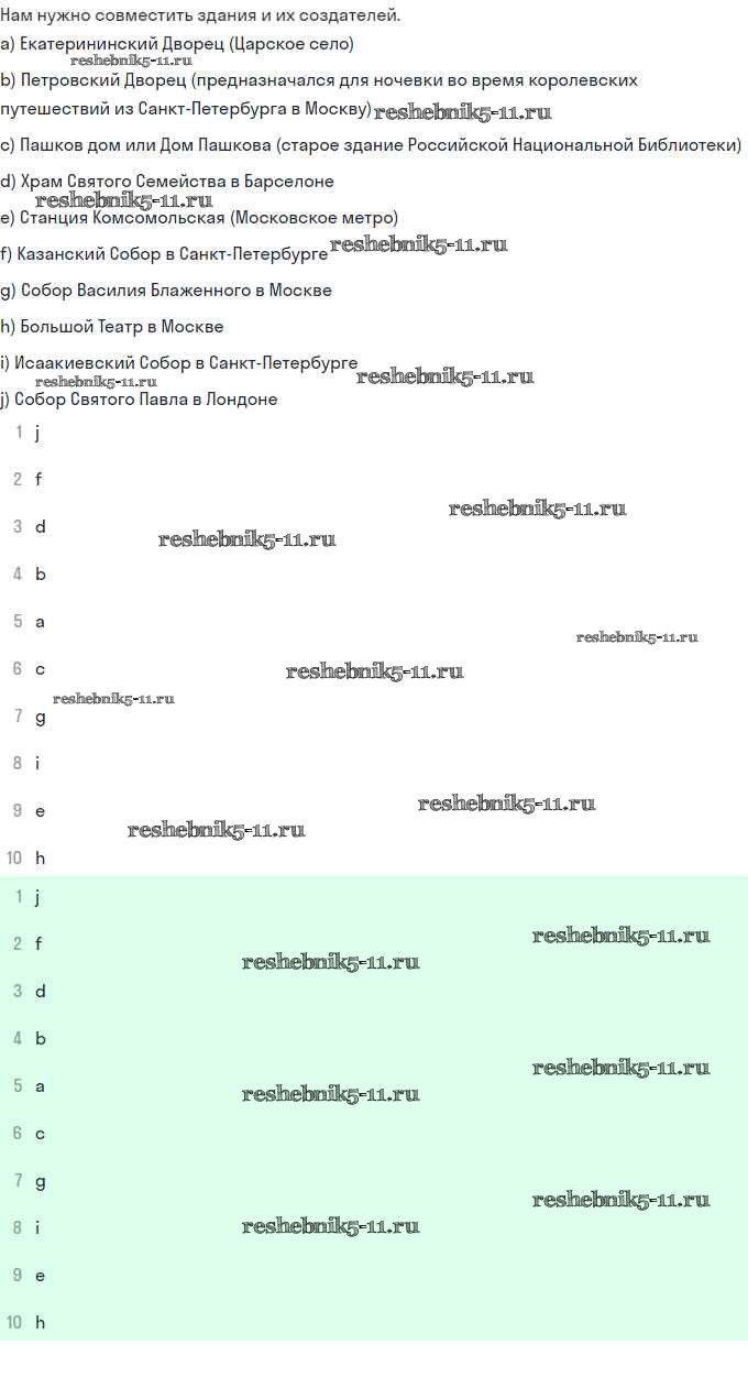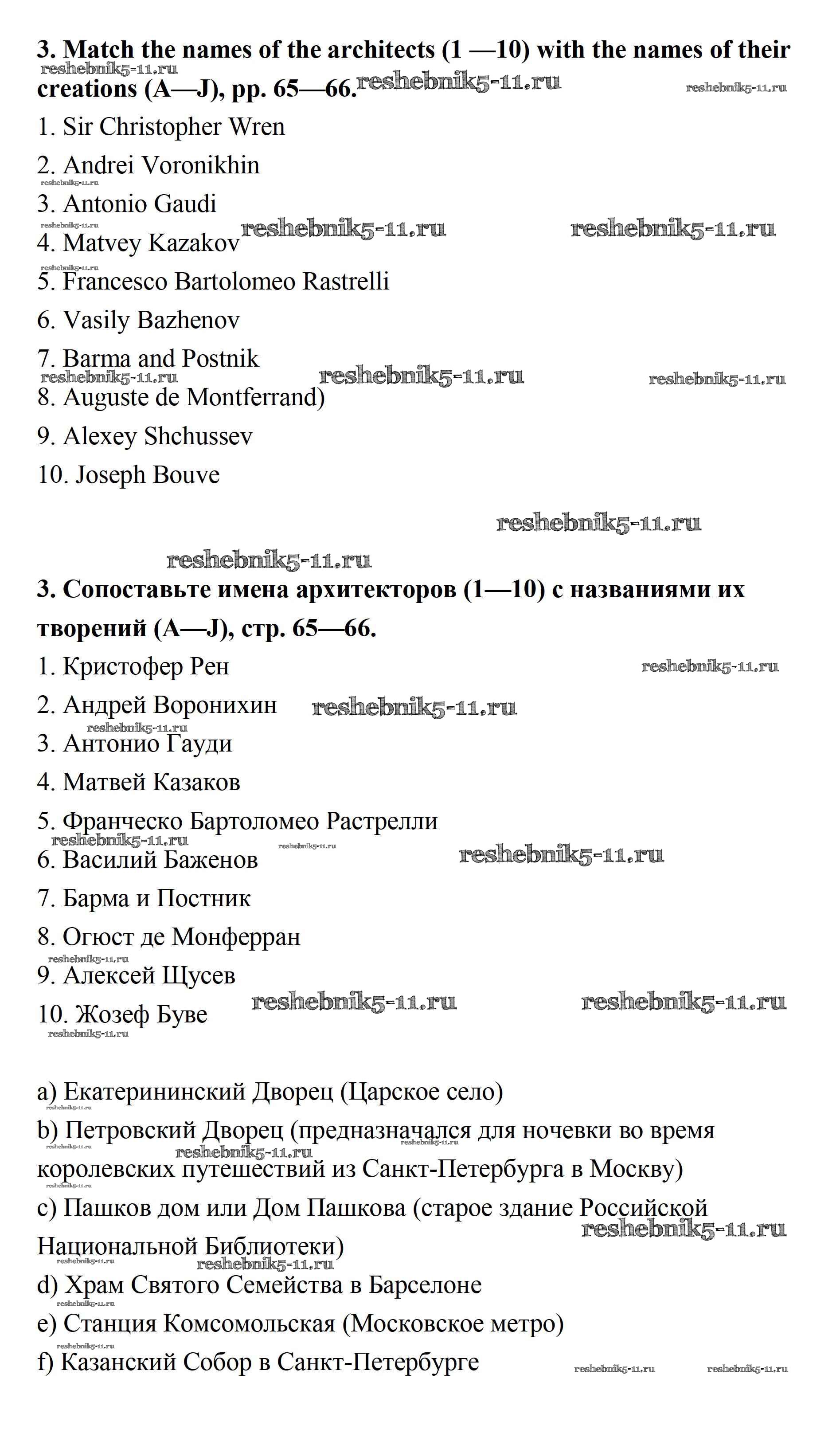Готовая домашняя работа с ответами по Английскому языку за 11 класс Афанасьева, Михеева Учебник Углубленный уровень Просвещение 2015 ФГОС - Unit 2. Town and Its Architecture 3