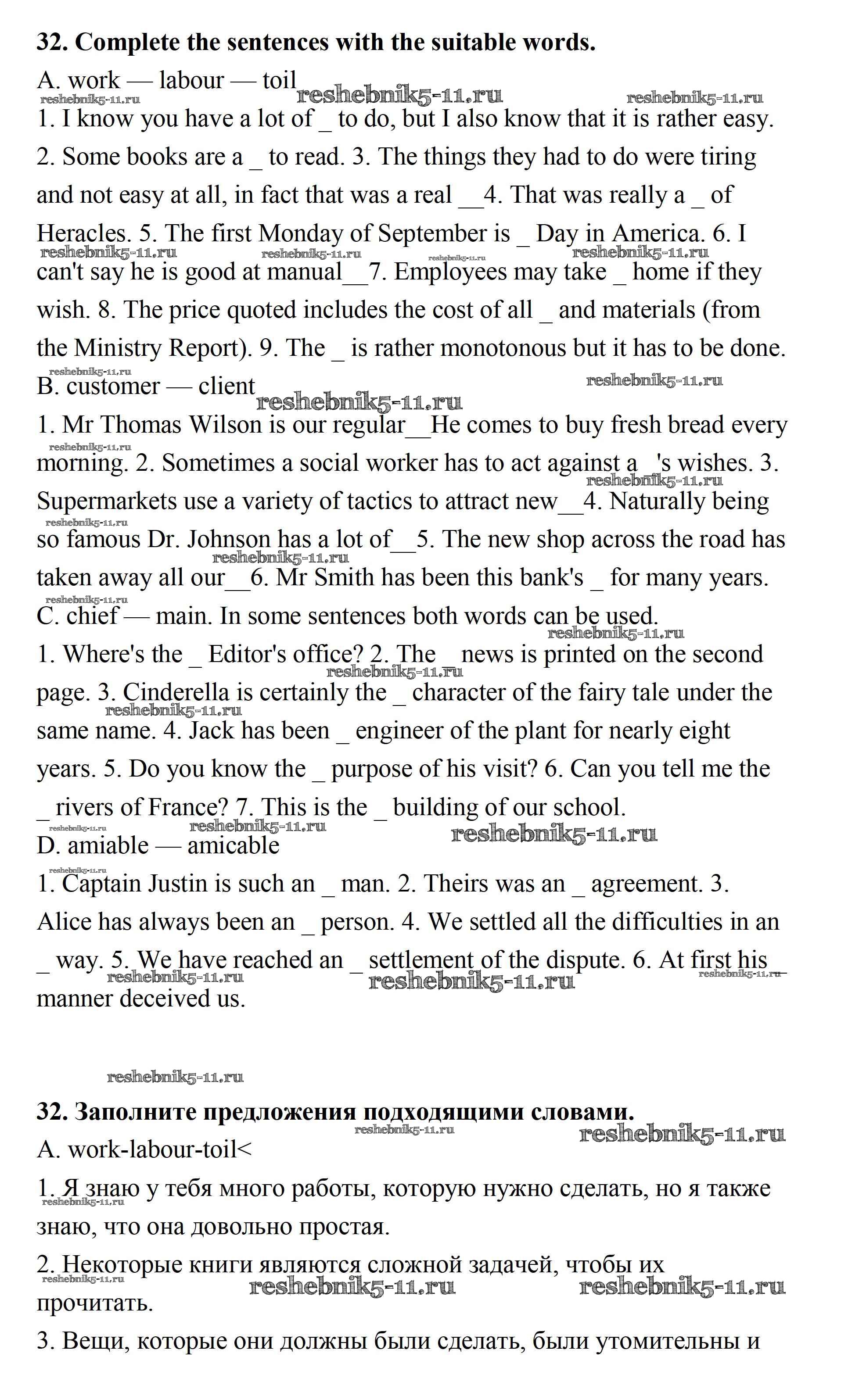 Готовая домашняя работа с ответами по Английскому языку за 11 класс Афанасьева, Михеева Учебник Углубленный уровень Просвещение 2015 ФГОС - Unit 2. Town and Its Architecture 32