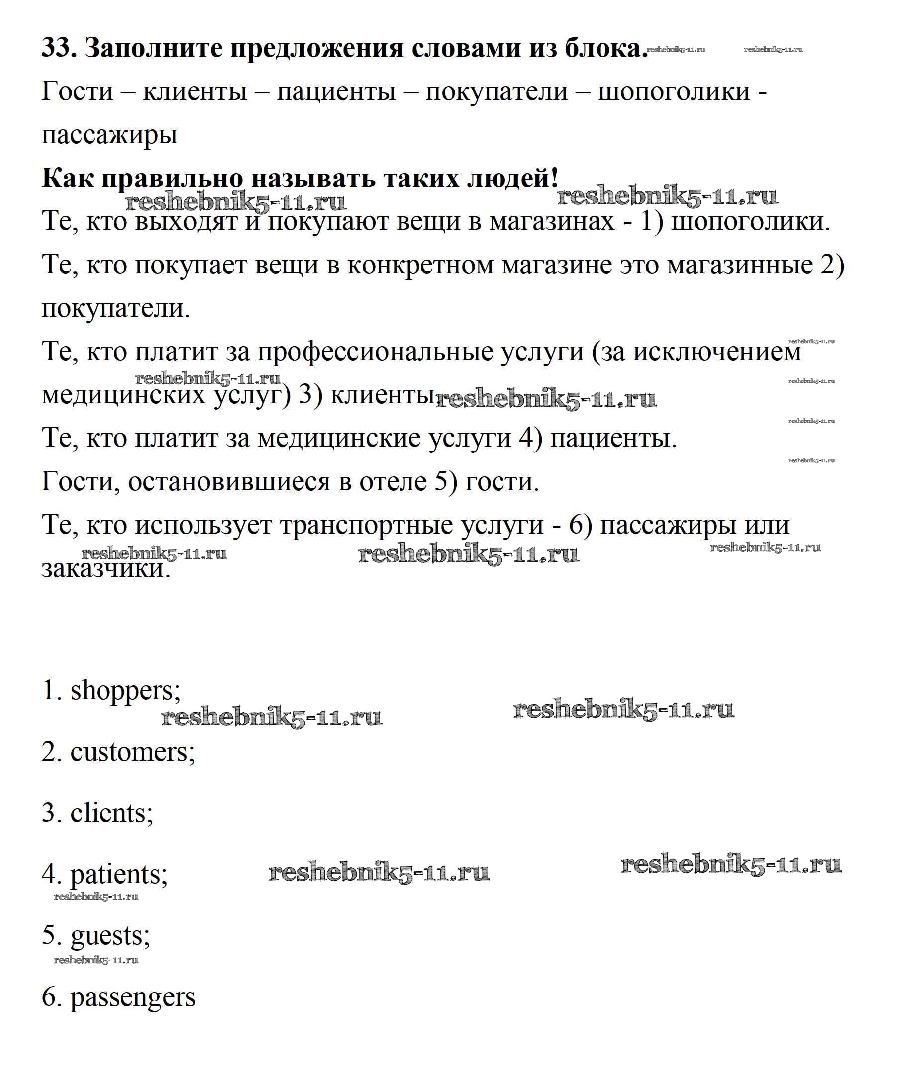 Готовая домашняя работа с ответами по Английскому языку за 11 класс Афанасьева, Михеева Учебник Углубленный уровень Просвещение 2015 ФГОС - Unit 2. Town and Its Architecture 33