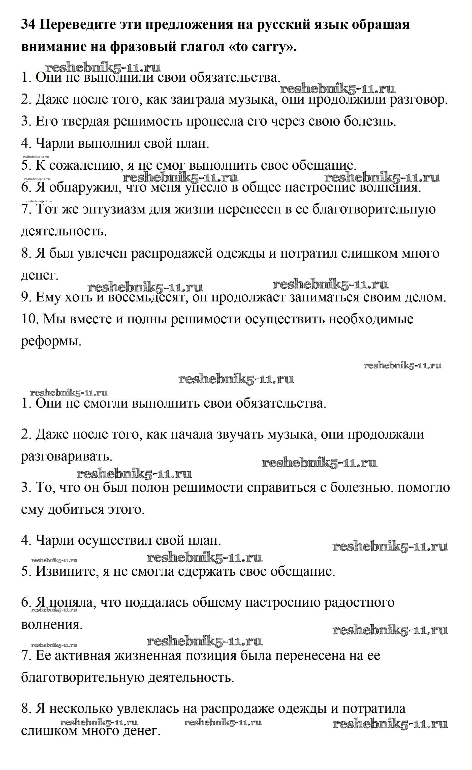 Готовая домашняя работа с ответами по Английскому языку за 11 класс Афанасьева, Михеева Учебник Углубленный уровень Просвещение 2015 ФГОС - Unit 2. Town and Its Architecture 34