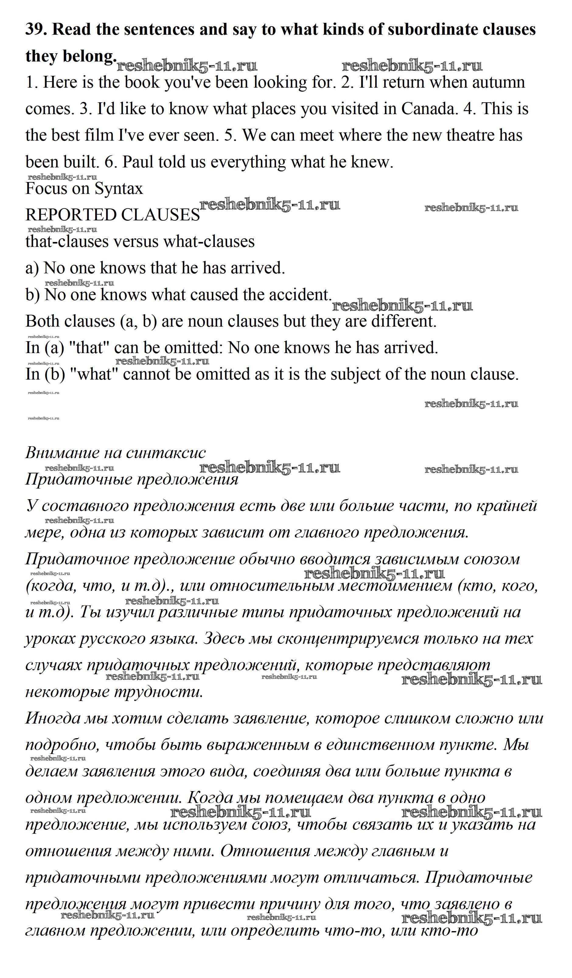 Готовая домашняя работа с ответами по Английскому языку за 11 класс Афанасьева, Михеева Учебник Углубленный уровень Просвещение 2015 ФГОС - Unit 2. Town and Its Architecture 39