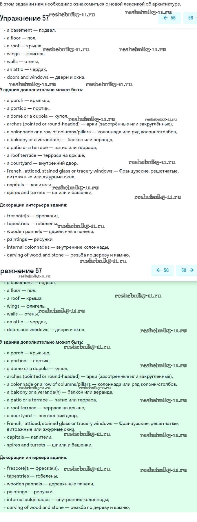 Готовая домашняя работа с ответами по Английскому языку за 11 класс Афанасьева, Михеева Учебник Углубленный уровень Просвещение 2015 ФГОС - Unit 2. Town and Its Architecture 57