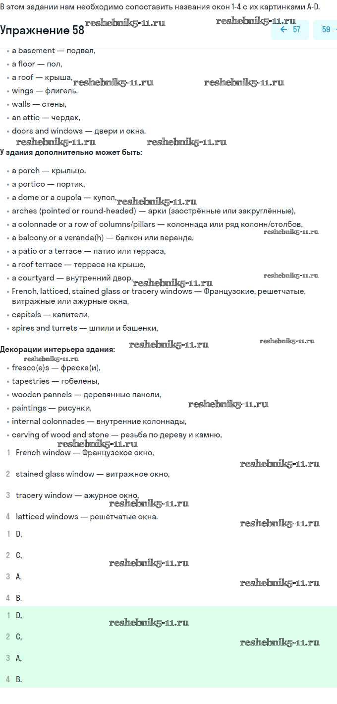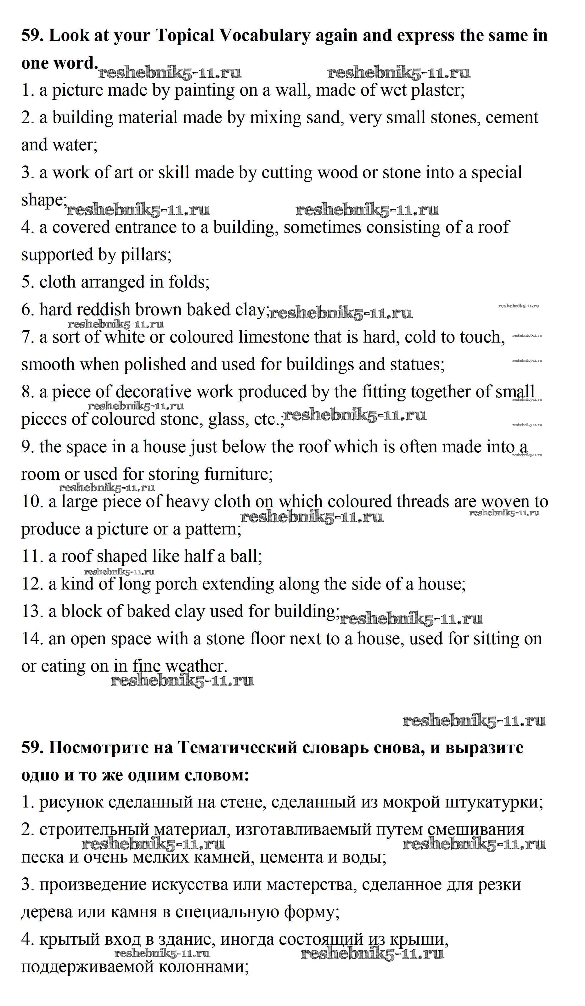 Готовая домашняя работа с ответами по Английскому языку за 11 класс Афанасьева, Михеева Учебник Углубленный уровень Просвещение 2015 ФГОС - Unit 2. Town and Its Architecture 58