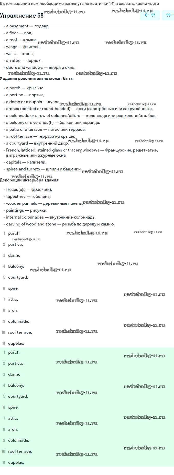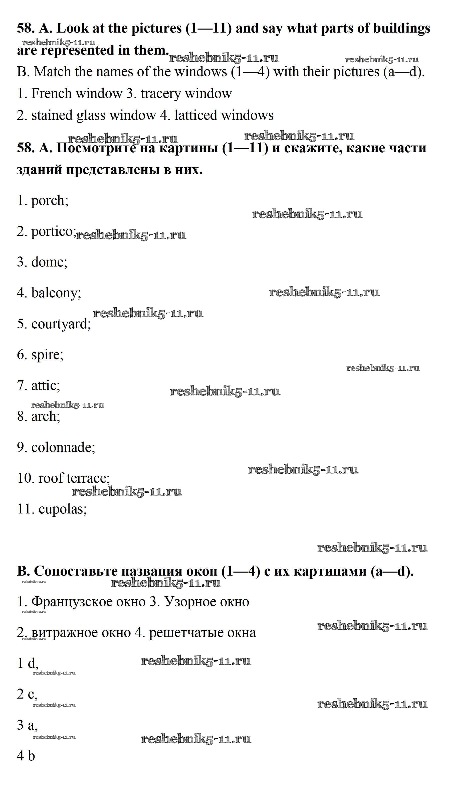 Решебник №1 / unit 2. town and its architecture / 58