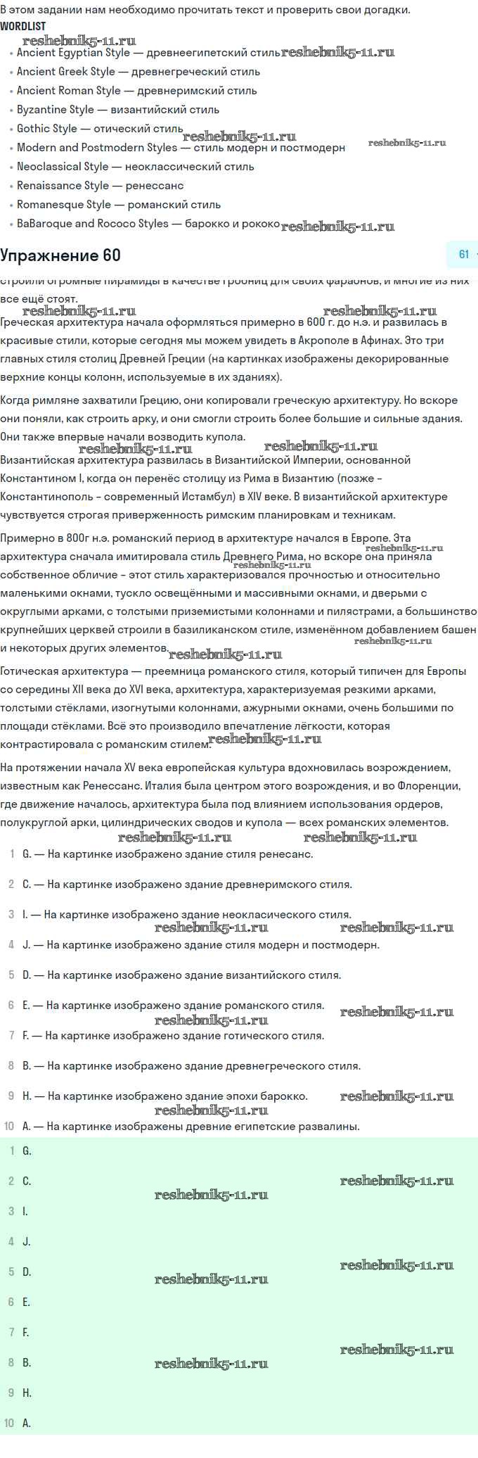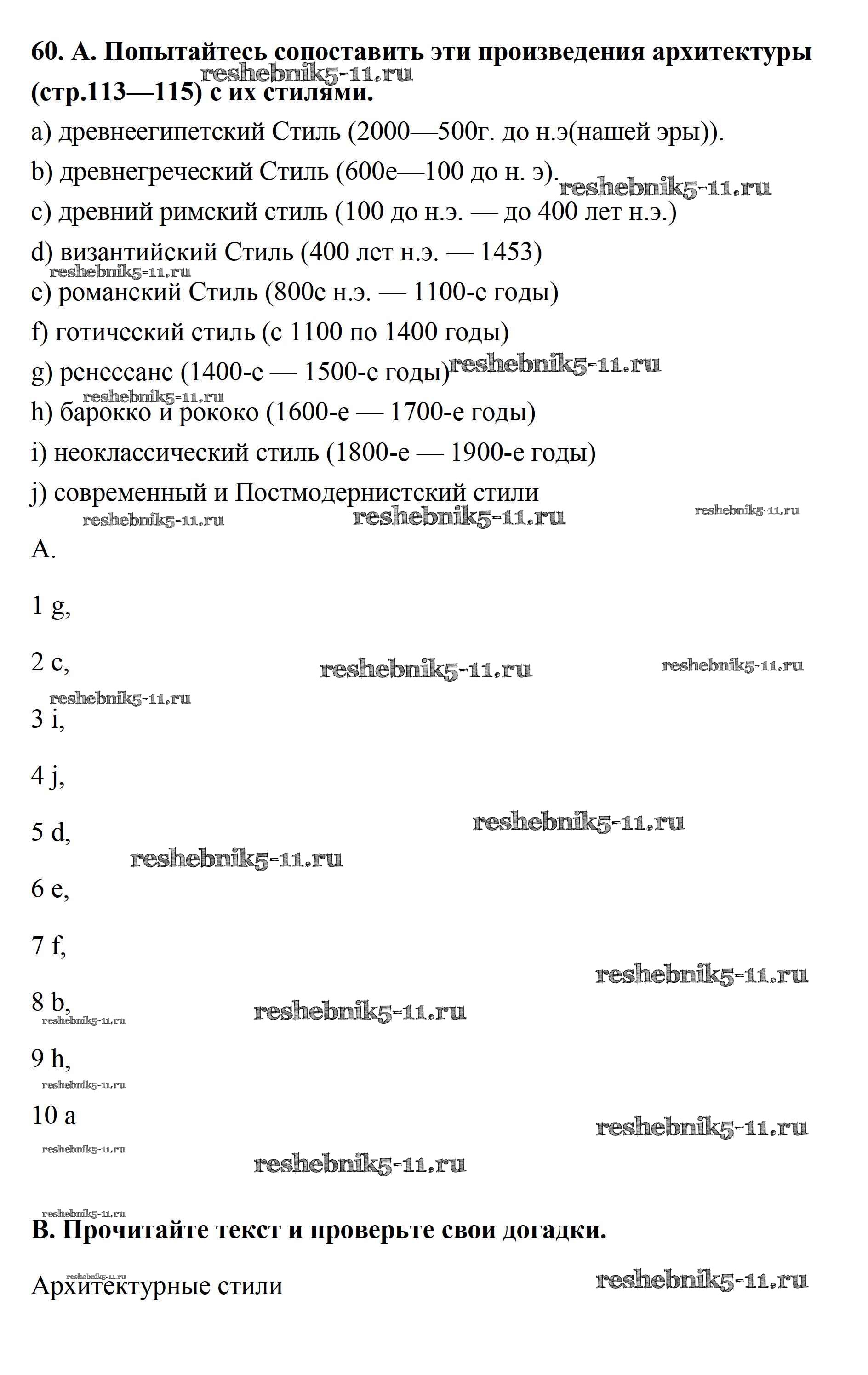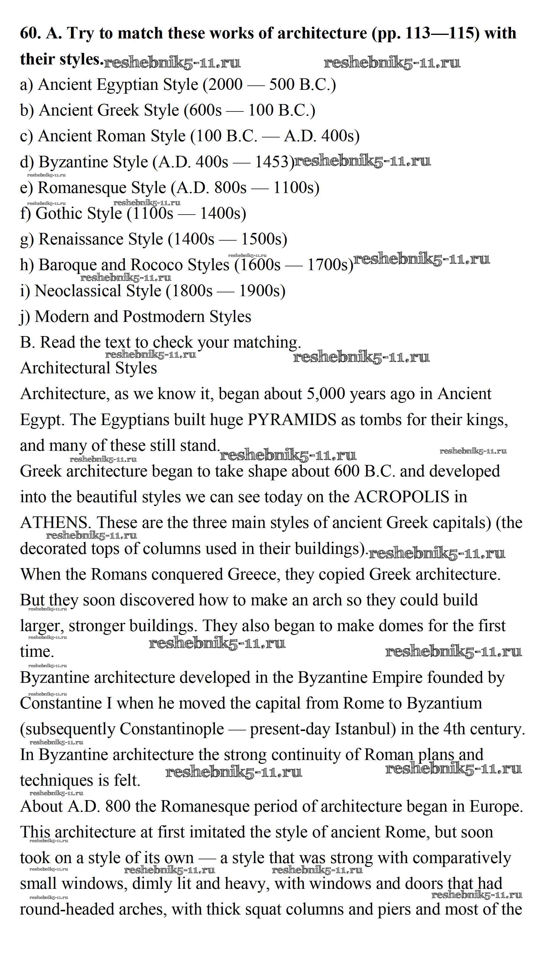 Готовая домашняя работа с ответами по Английскому языку за 11 класс Афанасьева, Михеева Учебник Углубленный уровень Просвещение 2015 ФГОС - Unit 2. Town and Its Architecture 60