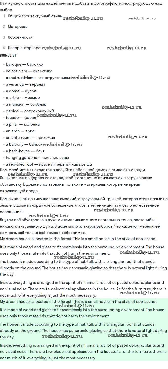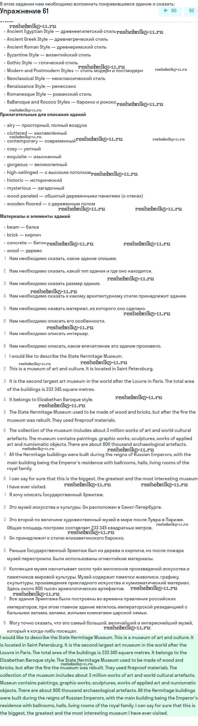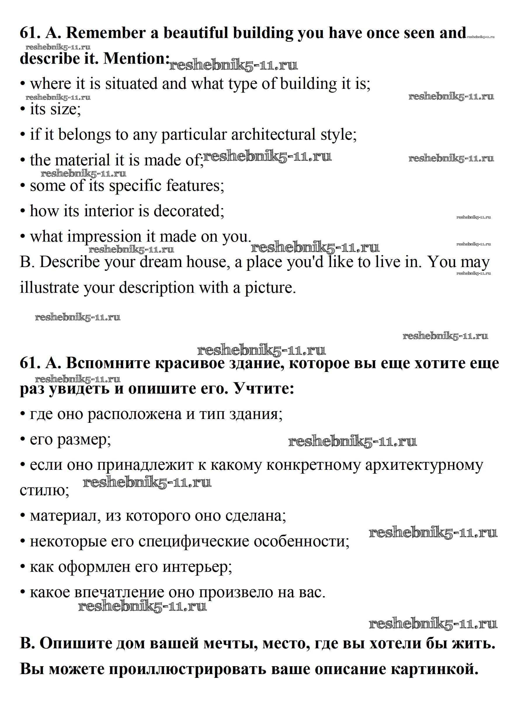 Готовая домашняя работа с ответами по Английскому языку за 11 класс Афанасьева, Михеева Учебник Углубленный уровень Просвещение 2015 ФГОС - Unit 2. Town and Its Architecture 61