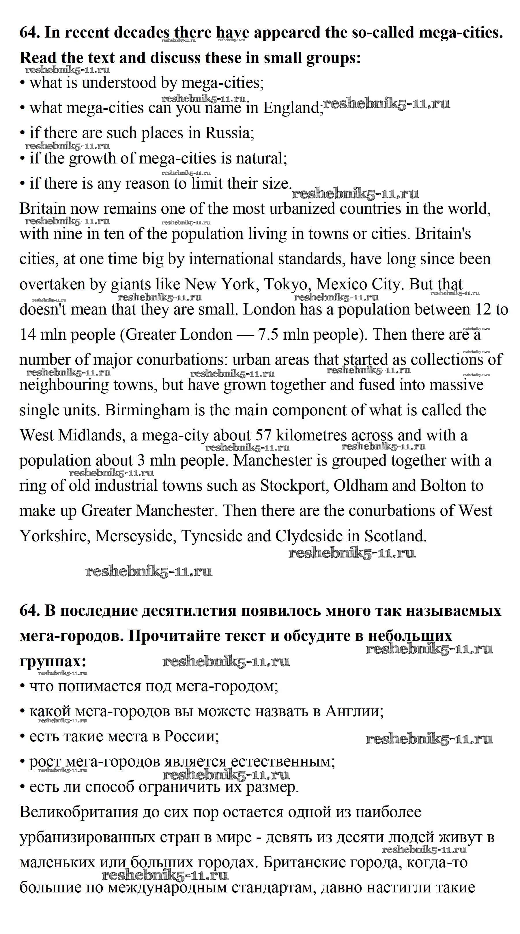 Готовая домашняя работа с ответами по Английскому языку за 11 класс Афанасьева, Михеева Учебник Углубленный уровень Просвещение 2015 ФГОС - Unit 2. Town and Its Architecture 64