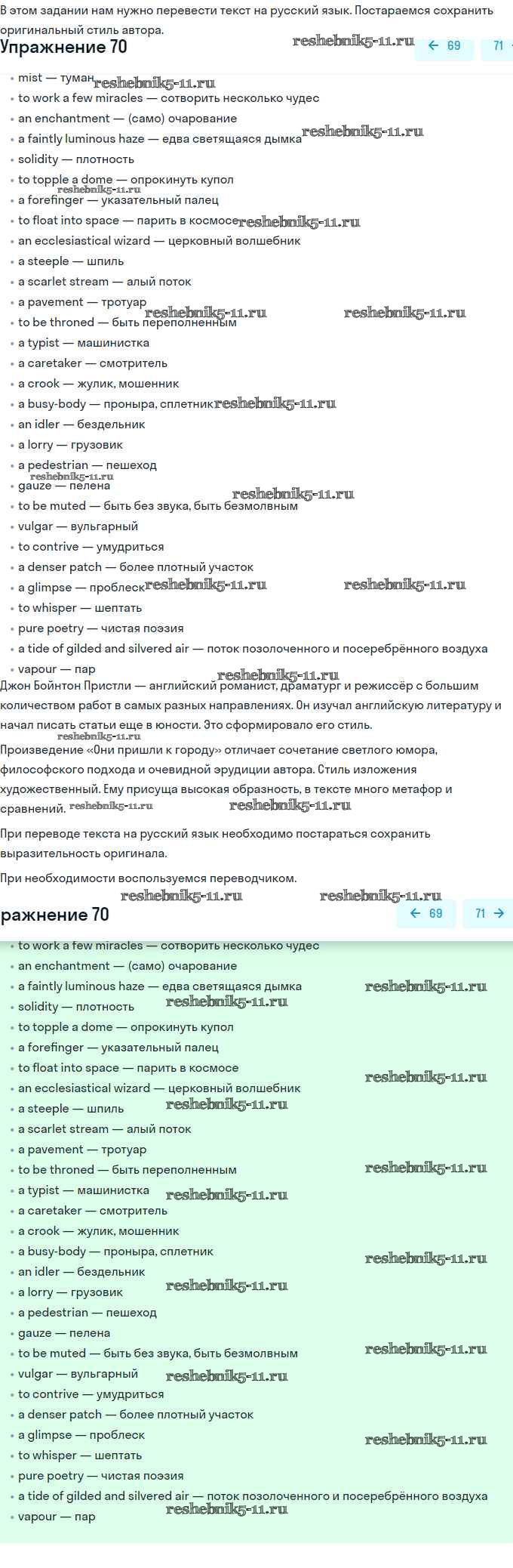 Готовая домашняя работа с ответами по Английскому языку за 11 класс Афанасьева, Михеева Учебник Углубленный уровень Просвещение 2015 ФГОС - Unit 2. Town and Its Architecture 70