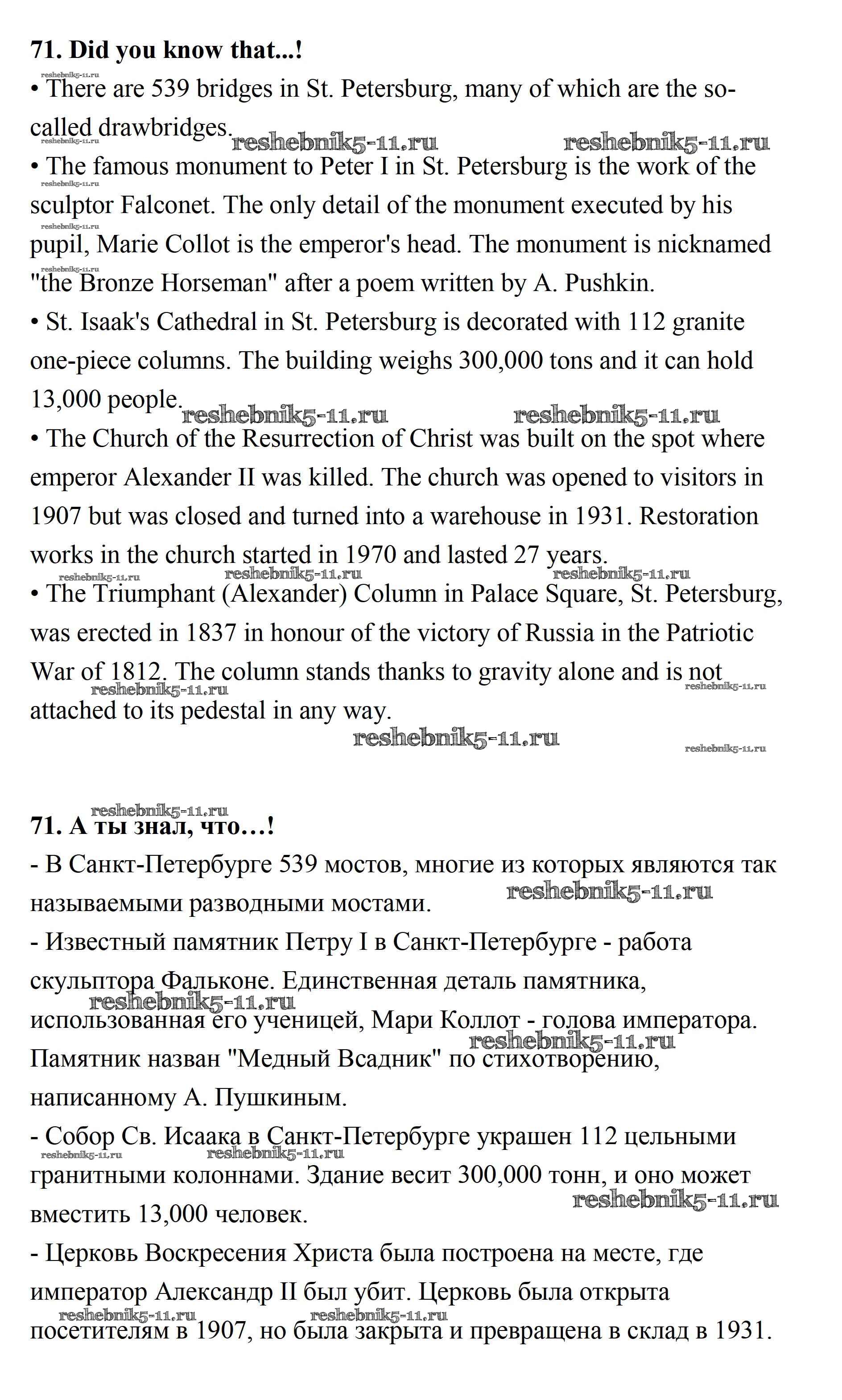 Готовая домашняя работа с ответами по Английскому языку за 11 класс Афанасьева, Михеева Учебник Углубленный уровень Просвещение 2015 ФГОС - Unit 2. Town and Its Architecture 71
