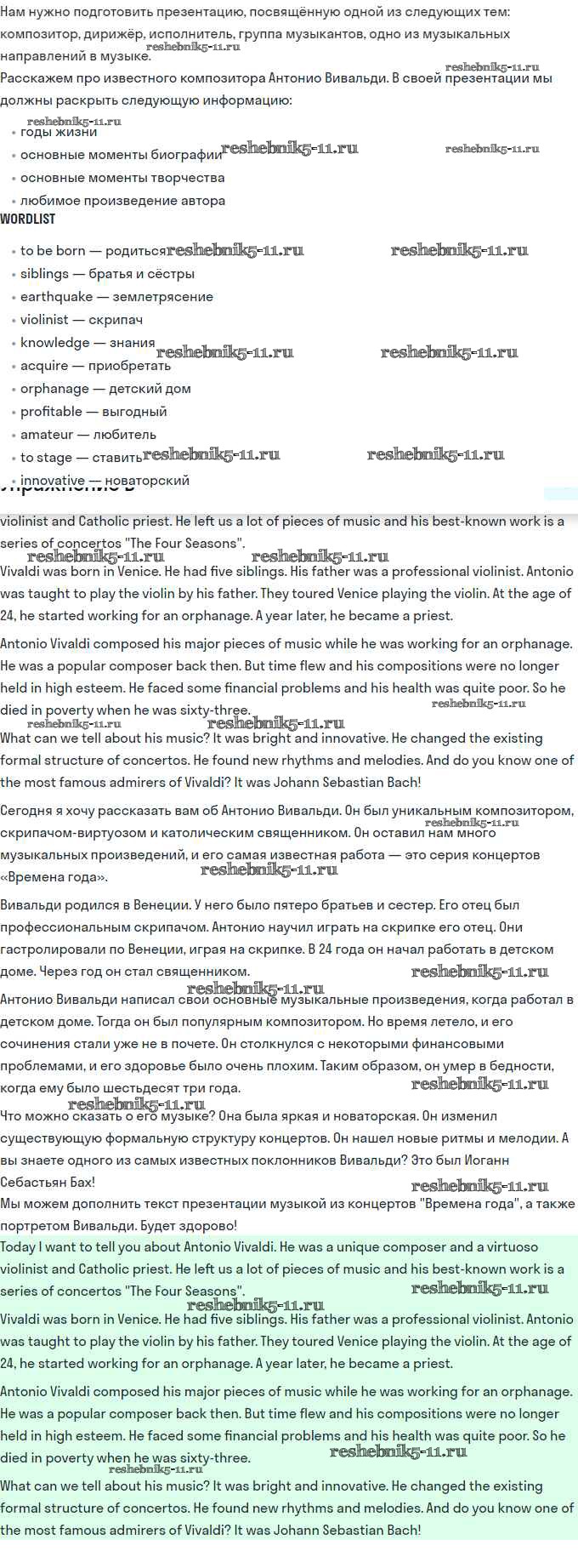Готовая домашняя работа с ответами по Английскому языку за 11 класс Афанасьева, Михеева Учебник Углубленный уровень Просвещение 2015 ФГОС - Unit 1. Sounds of Music Project work
