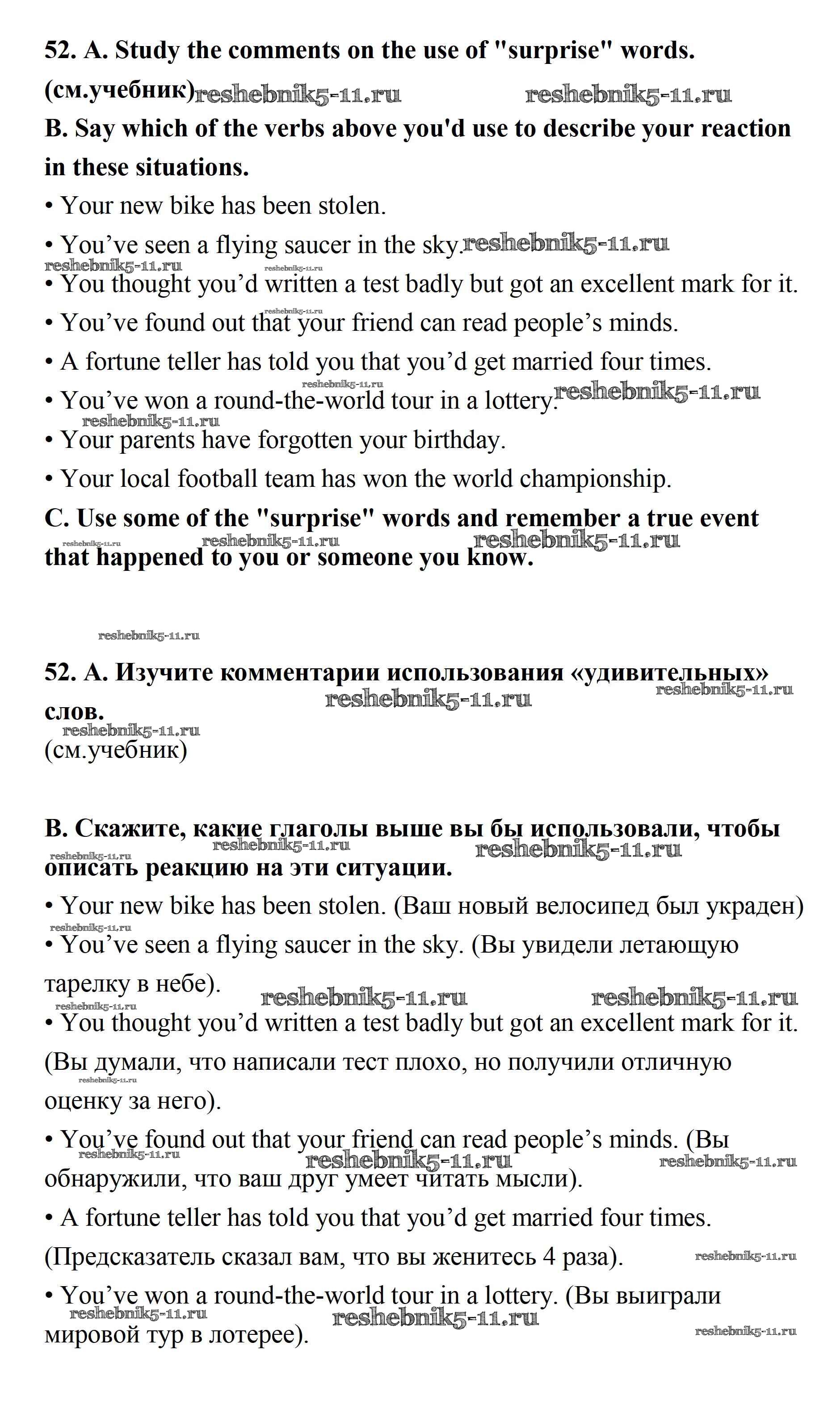 Готовая домашняя работа с ответами по Английскому языку за 11 класс Афанасьева, Михеева Учебник Углубленный уровень Просвещение 2015 ФГОС - Unit 3. Wonders of the World 52