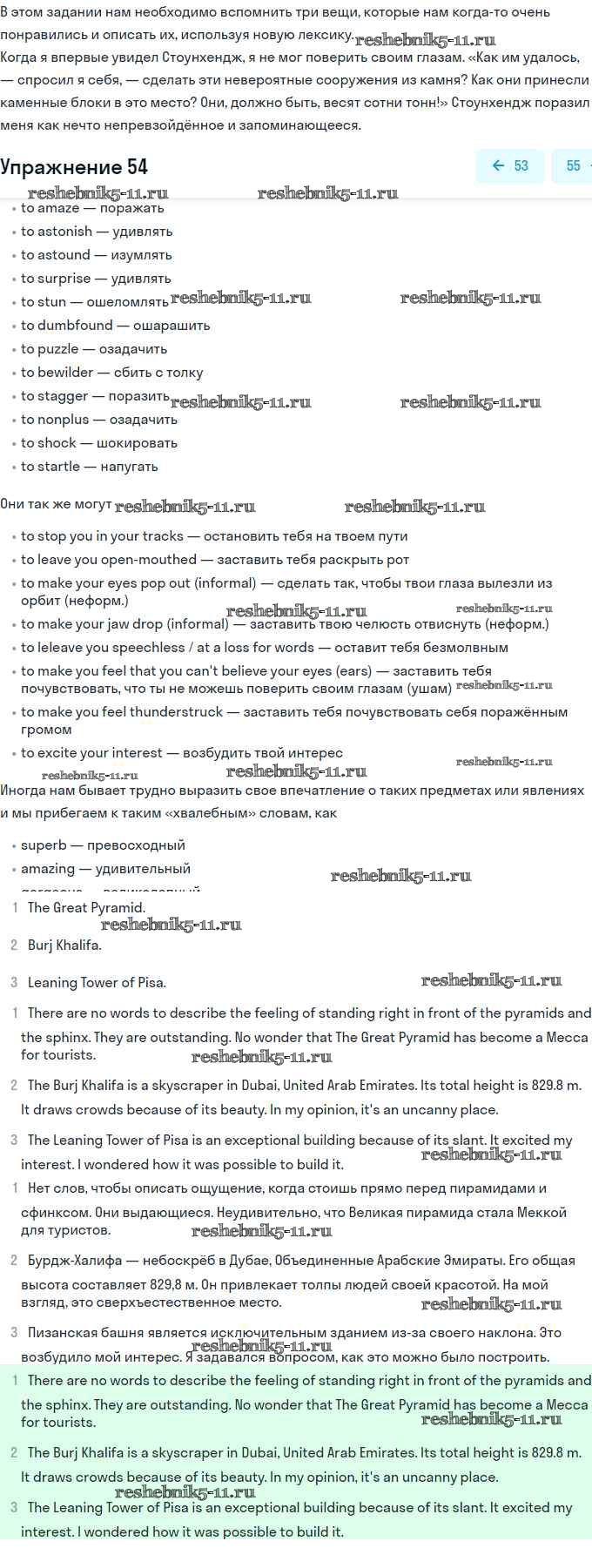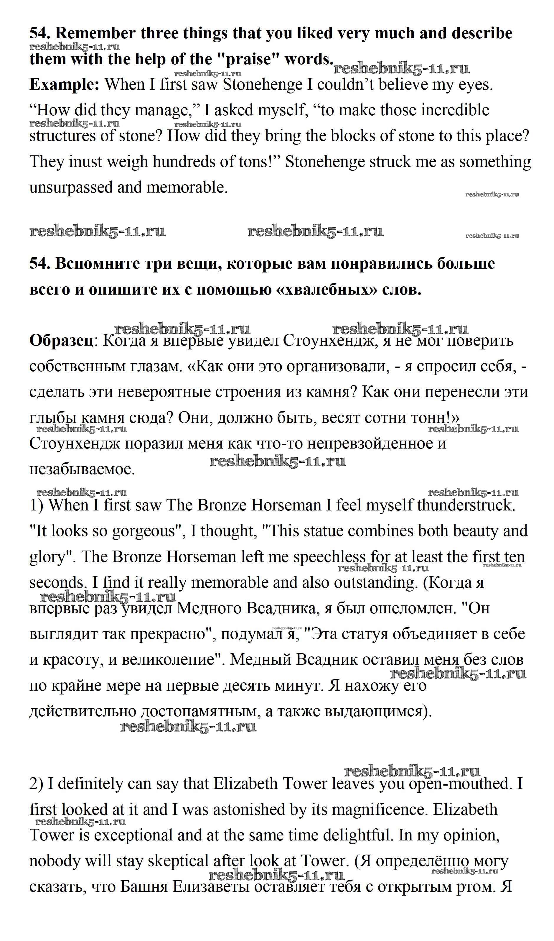 Готовая домашняя работа с ответами по Английскому языку за 11 класс Афанасьева, Михеева Учебник Углубленный уровень Просвещение 2015 ФГОС - Unit 3. Wonders of the World 54