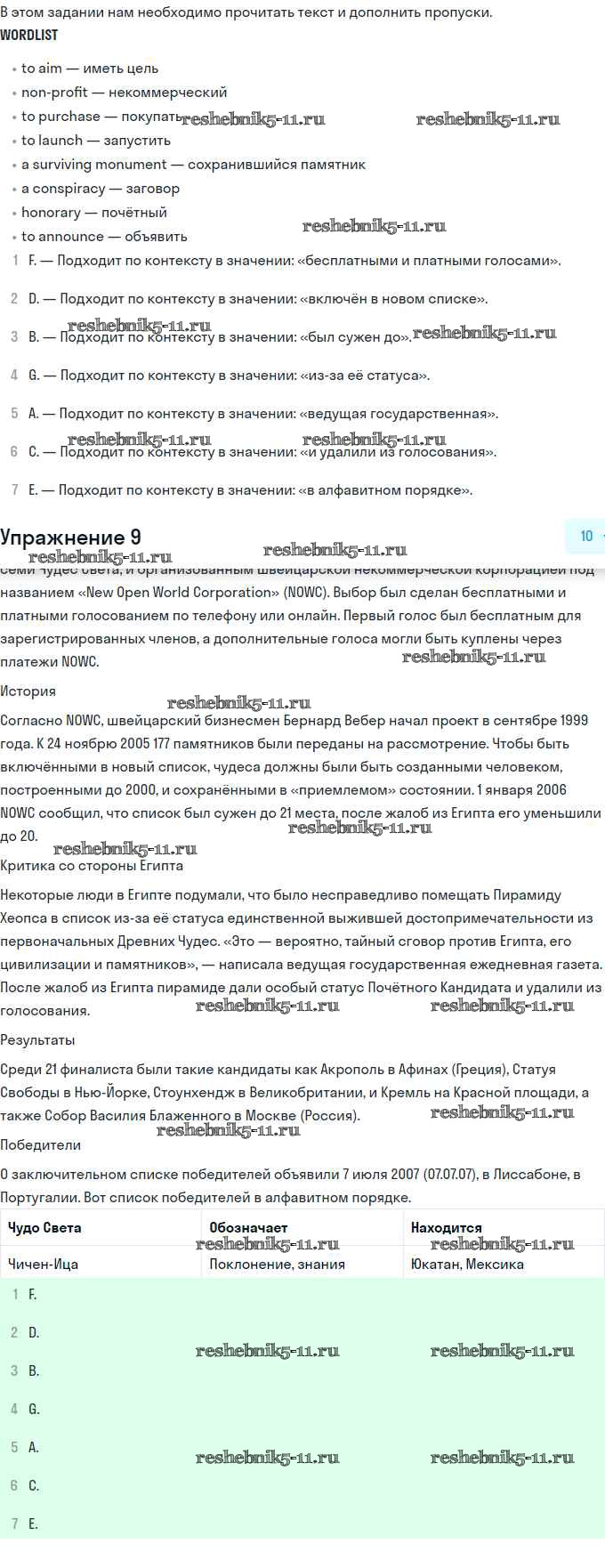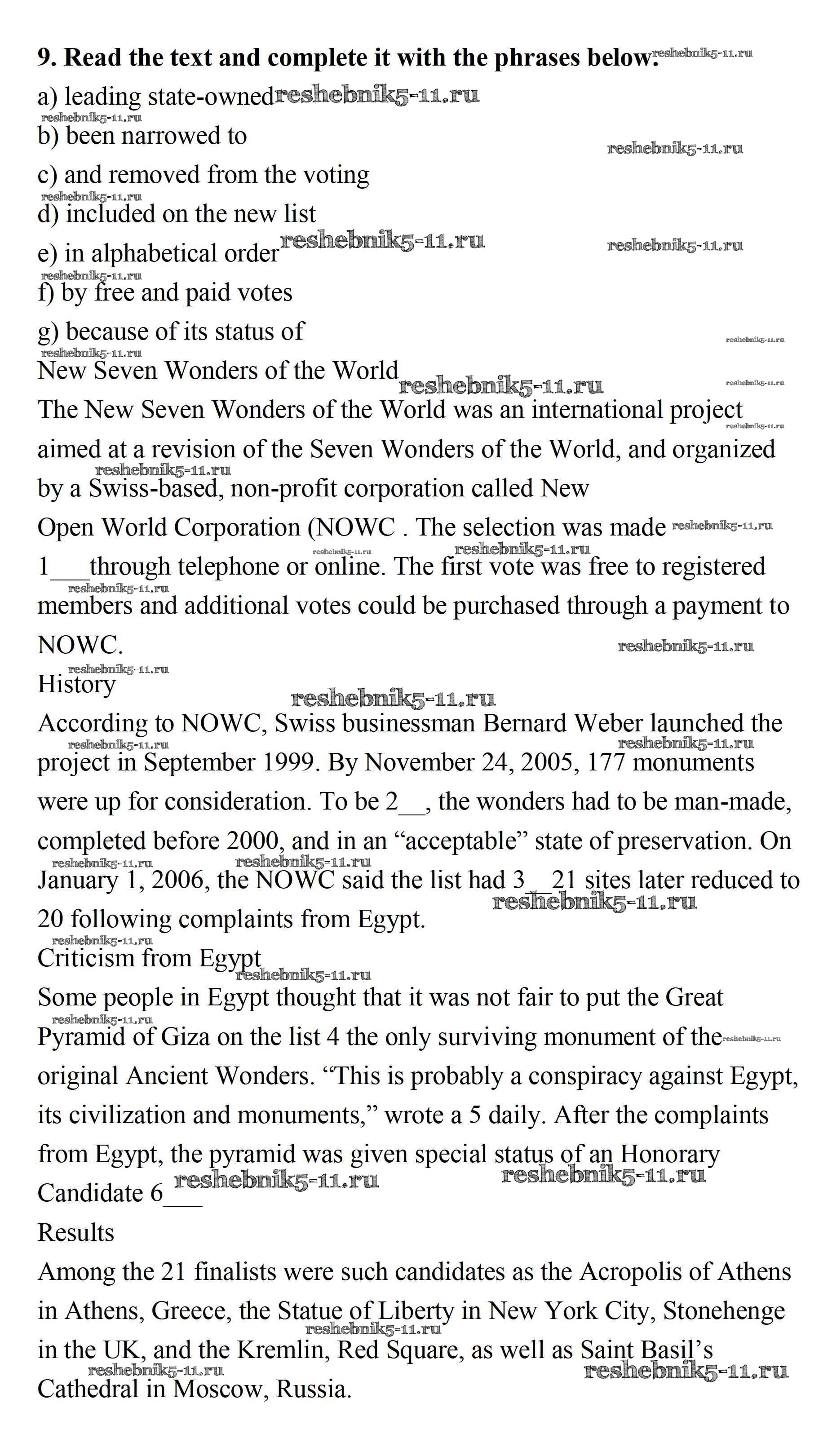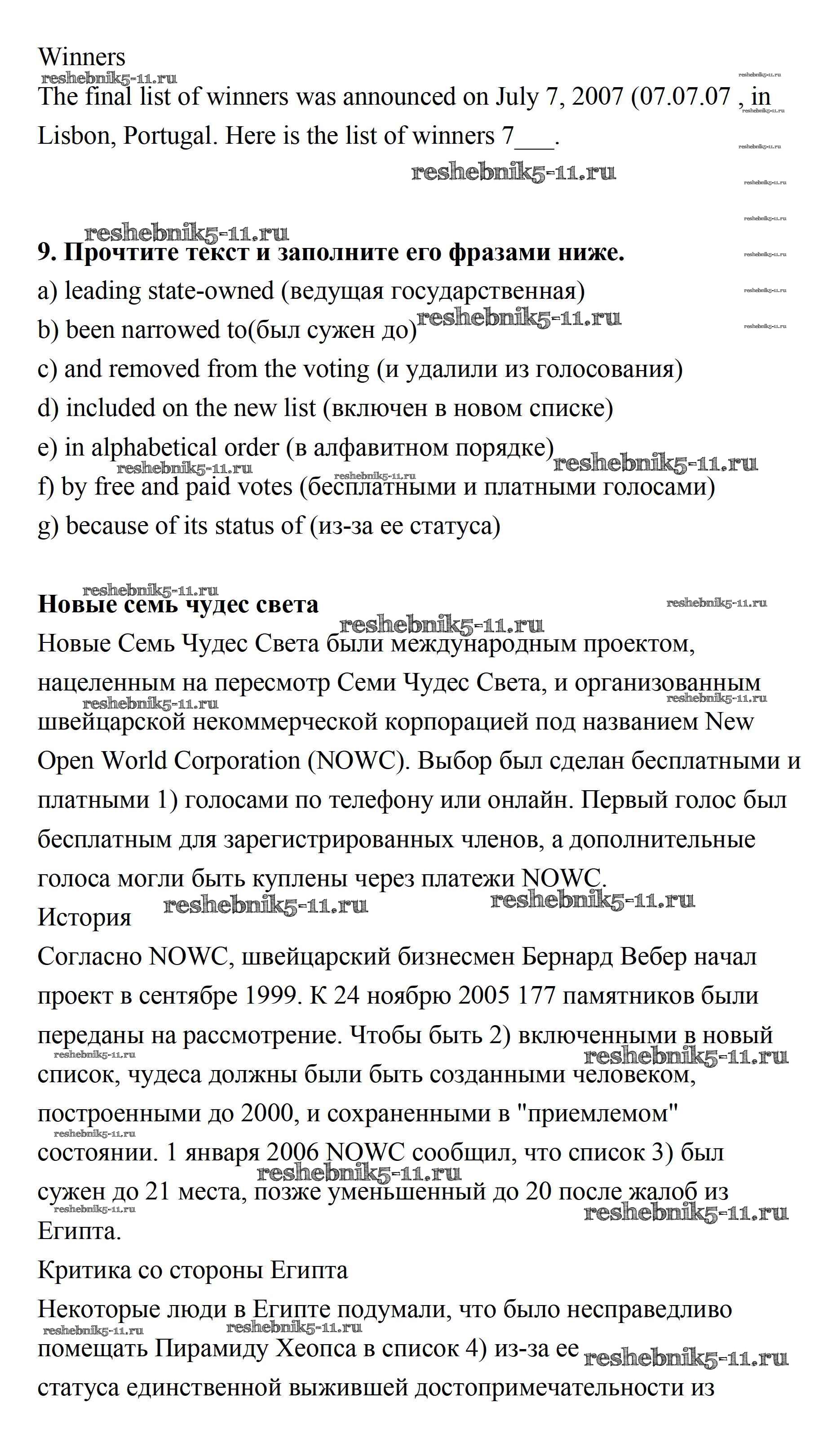 Готовая домашняя работа с ответами по Английскому языку за 11 класс Афанасьева, Михеева Учебник Углубленный уровень Просвещение 2015 ФГОС - Unit 3. Wonders of the World 9