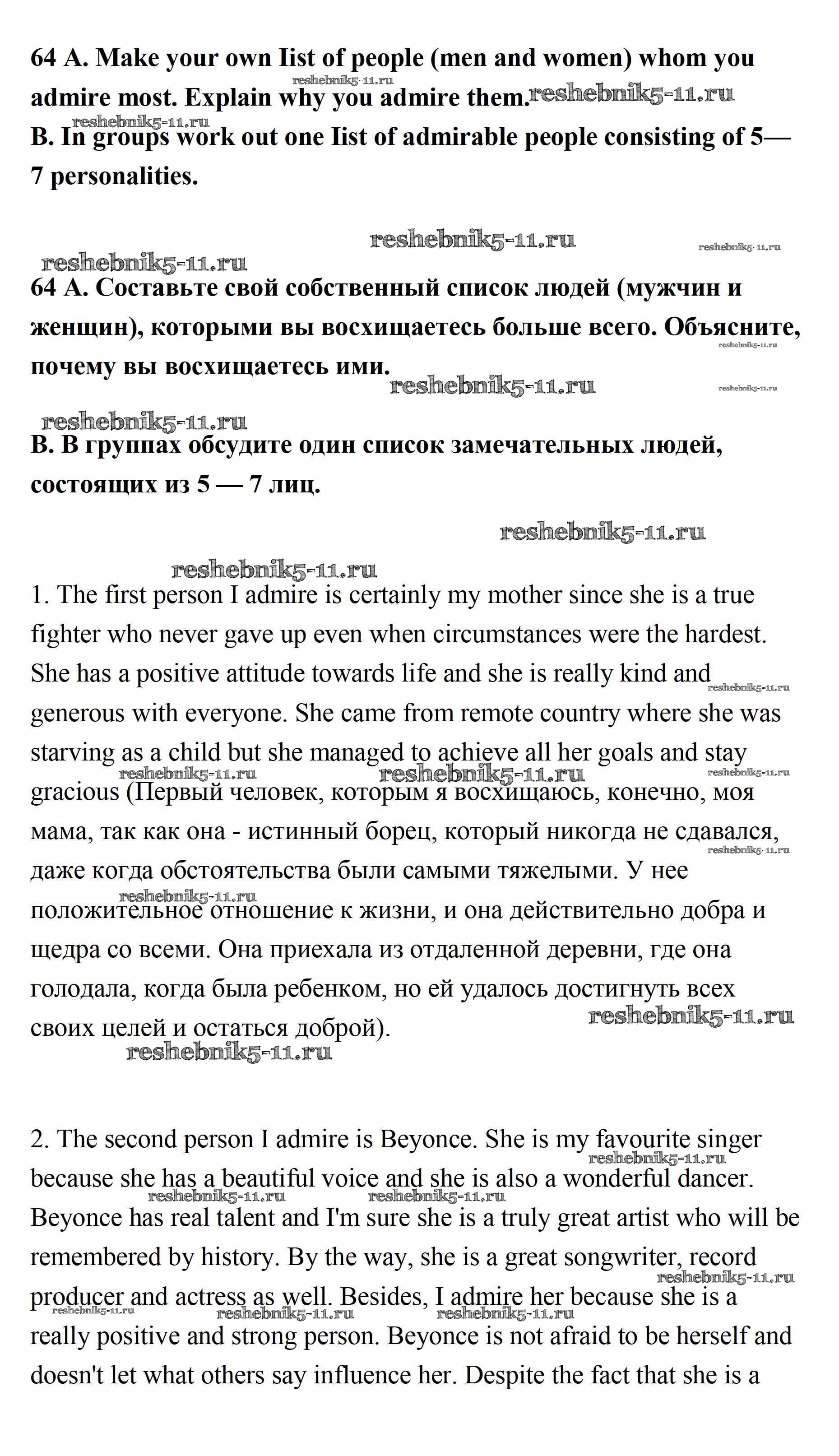 Готовая домашняя работа с ответами по Английскому языку за 11 класс Афанасьева, Михеева Учебник Углубленный уровень Просвещение 2015 ФГОС - Unit 4. Man as the Greatest Wonder of the World 64