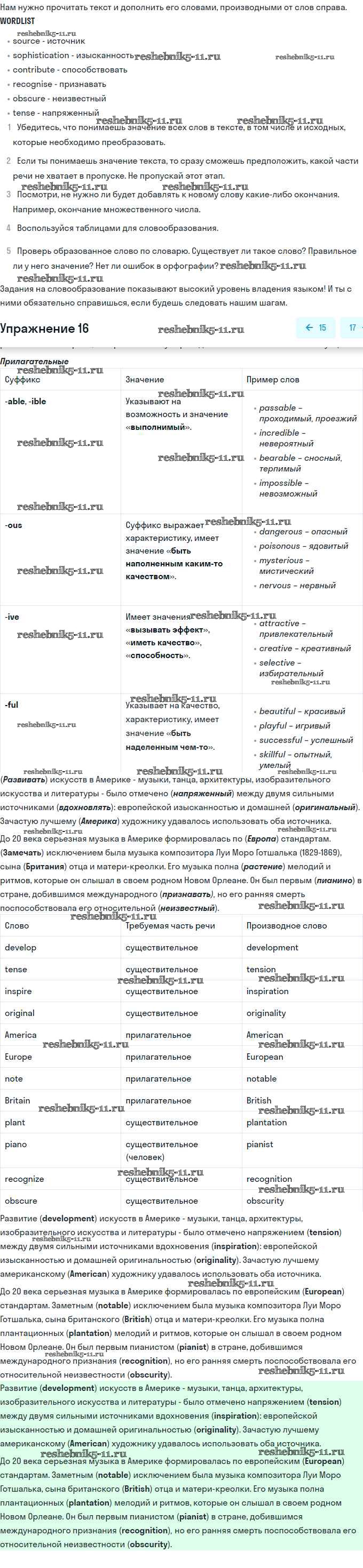 Готовая домашняя работа с ответами по Английскому языку за 11 класс Афанасьева, Михеева, Баранова, Мичугина Рабочая тетрадь Углубленный уровень Просвещение 2015 ФГОС - Unit 1 (Sounds of Music) 16