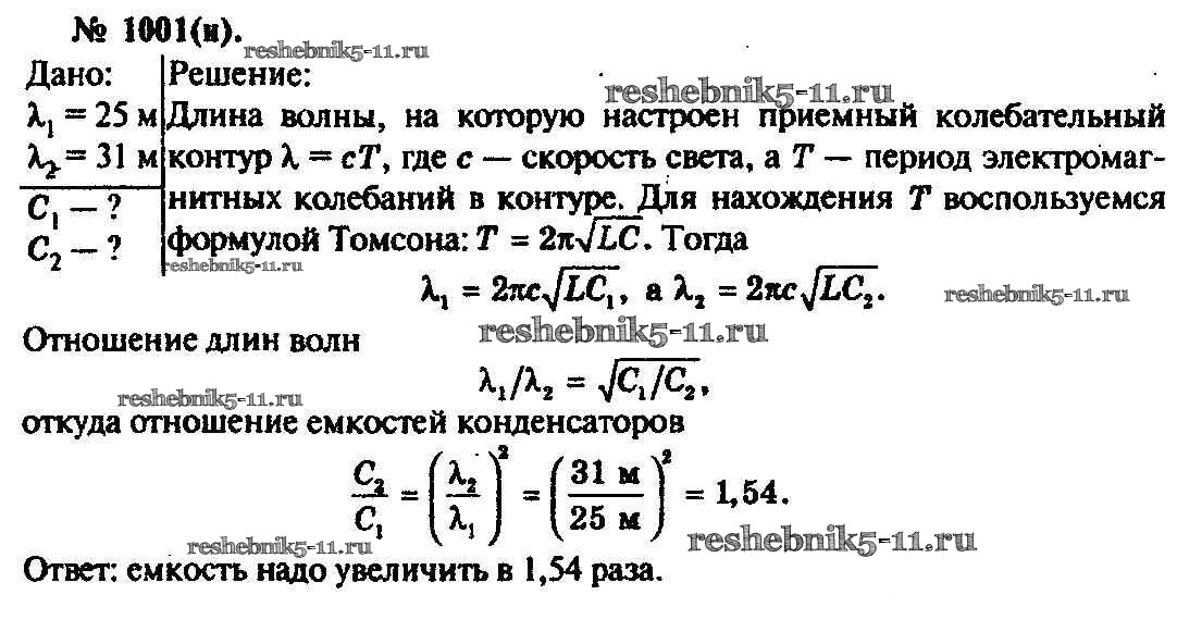 Физика за 10-11 класс Рымкевич Задачник УМК Дрофа задача 1001