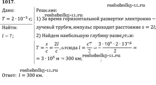 Готовая домашняя работа с ответами по Физике за 10, 11 класс Рымкевич Задачник УМК Дрофа 2013 ФГОС - Задачи 1017