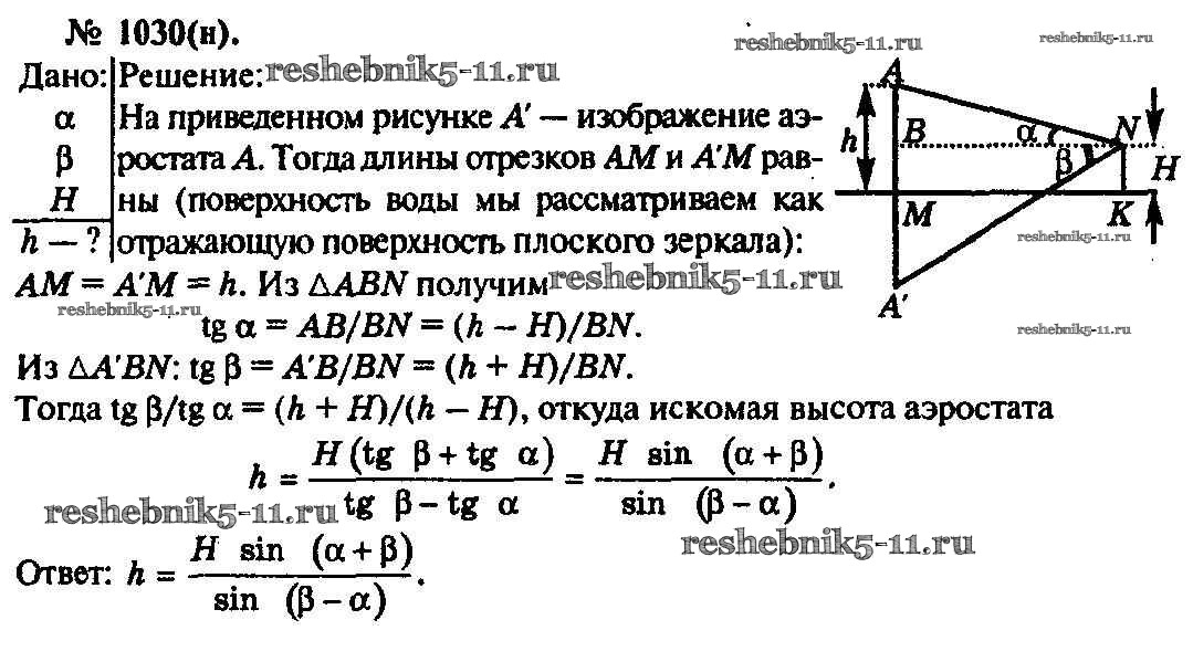 Физика за 10-11 класс Рымкевич Задачник УМК Дрофа задача 1030