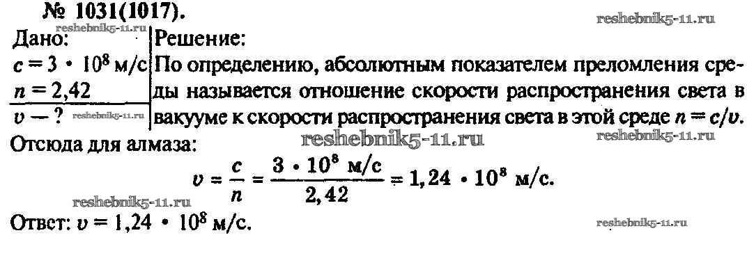 Готовая домашняя работа с ответами по Физике за 10, 11 класс Рымкевич Задачник УМК Дрофа 2013 ФГОС - Задачи 1031