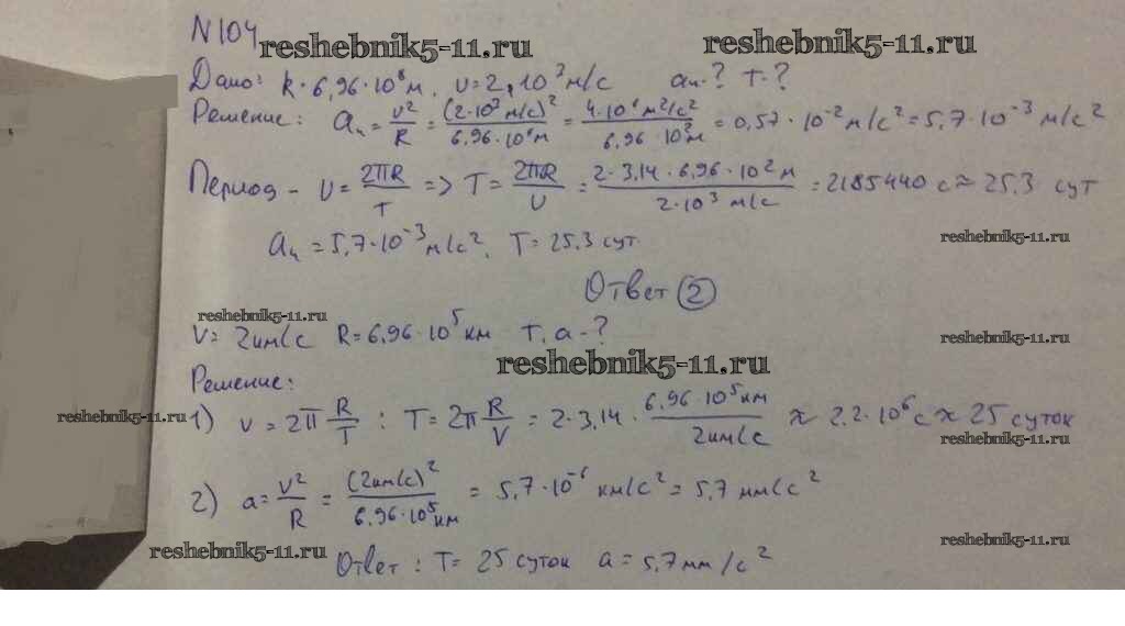 Готовая домашняя работа с ответами по Физике за 10, 11 класс Рымкевич Задачник УМК Дрофа 2013 ФГОС - Задачи 104