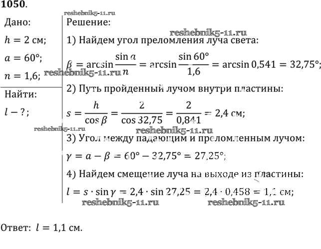 Готовая домашняя работа с ответами по Физике за 10, 11 класс Рымкевич Задачник УМК Дрофа 2013 ФГОС - Задачи 1050