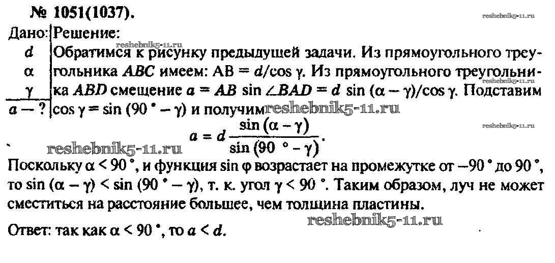 Готовая домашняя работа с ответами по Физике за 10, 11 класс Рымкевич Задачник УМК Дрофа 2013 ФГОС - Задачи 1051