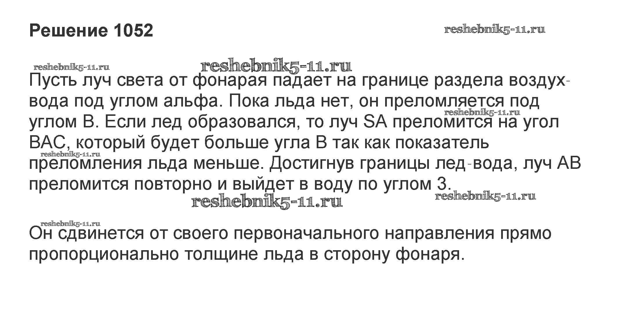 Готовая домашняя работа с ответами по Физике за 10, 11 класс Рымкевич Задачник УМК Дрофа 2013 ФГОС - Задачи 1052