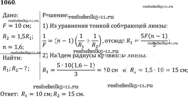 Готовая домашняя работа с ответами по Физике за 10, 11 класс Рымкевич Задачник УМК Дрофа 2013 ФГОС - Задачи 1060