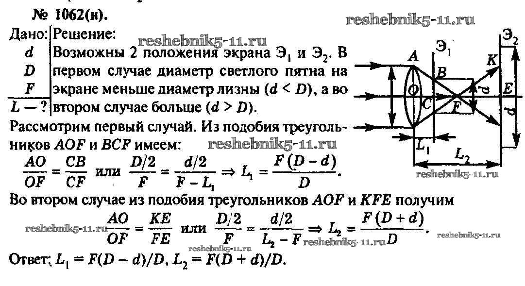 Готовая домашняя работа с ответами по Физике за 10, 11 класс Рымкевич Задачник УМК Дрофа 2013 ФГОС - Задачи 1062