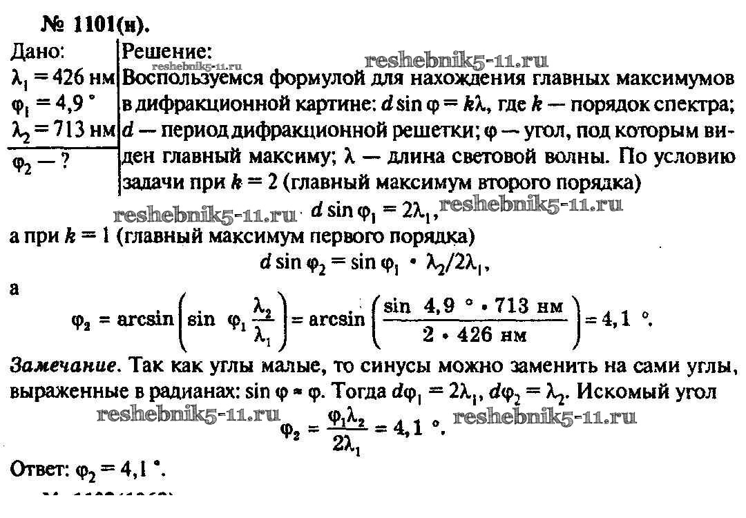 Готовая домашняя работа с ответами по Физике за 10, 11 класс Рымкевич Задачник УМК Дрофа 2013 ФГОС - Задачи 1101