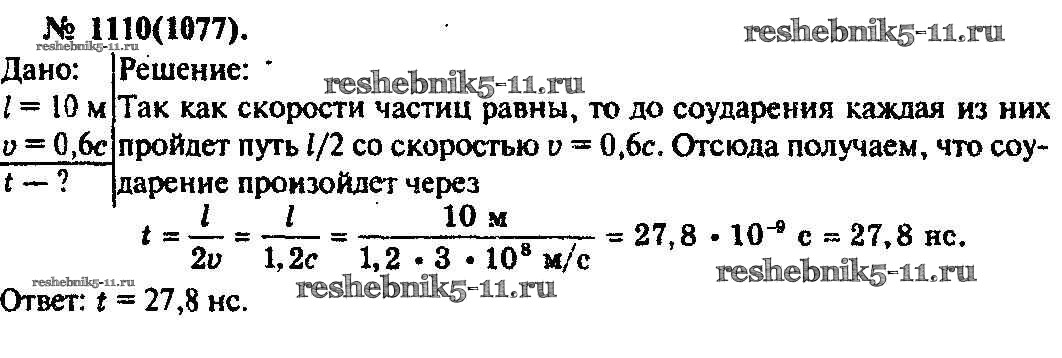 Физика за 10-11 класс Рымкевич Задачник УМК Дрофа задача 1110