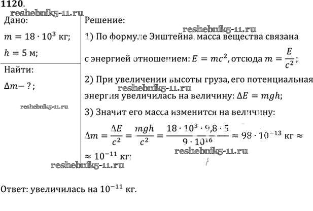 Готовая домашняя работа с ответами по Физике за 10, 11 класс Рымкевич Задачник УМК Дрофа 2013 ФГОС - Задачи 1120