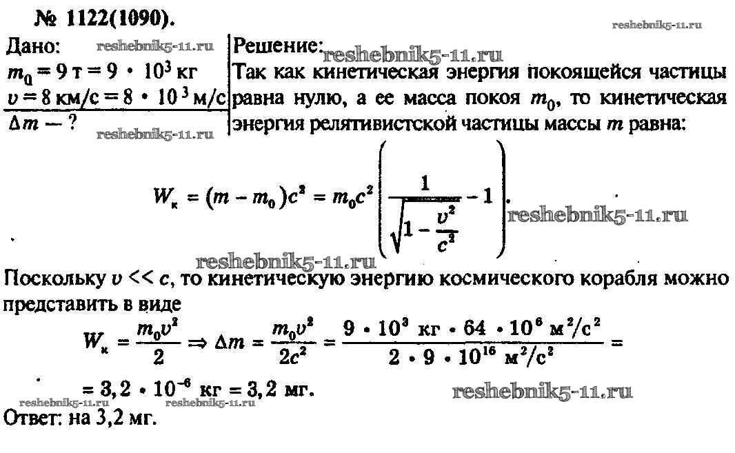 Готовая домашняя работа с ответами по Физике за 10, 11 класс Рымкевич Задачник УМК Дрофа 2013 ФГОС - Задачи 1122