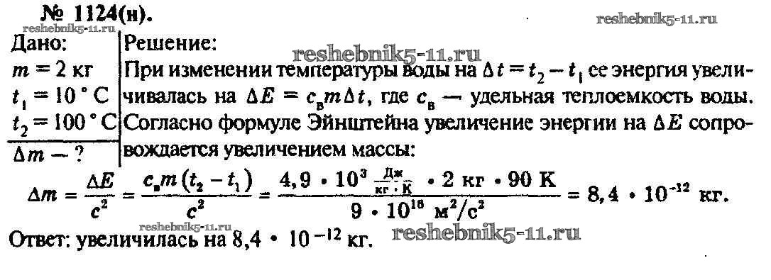 Готовая домашняя работа с ответами по Физике за 10, 11 класс Рымкевич Задачник УМК Дрофа 2013 ФГОС - Задачи 1124