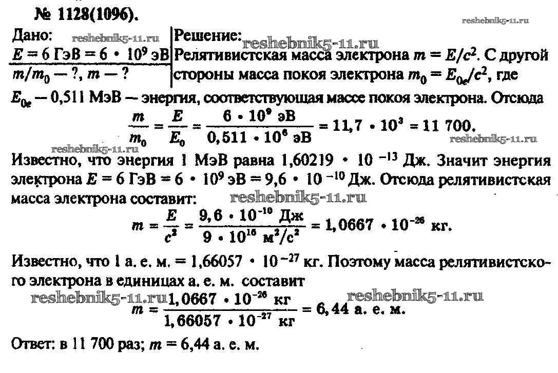 Готовая домашняя работа с ответами по Физике за 10, 11 класс Рымкевич Задачник УМК Дрофа 2013 ФГОС - Задачи 1128