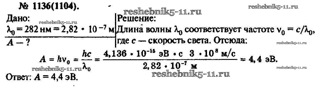 Физика за 10-11 класс Рымкевич Задачник УМК Дрофа задача 1136