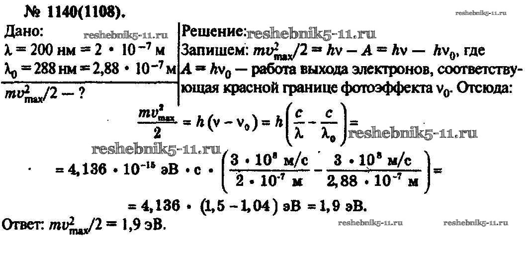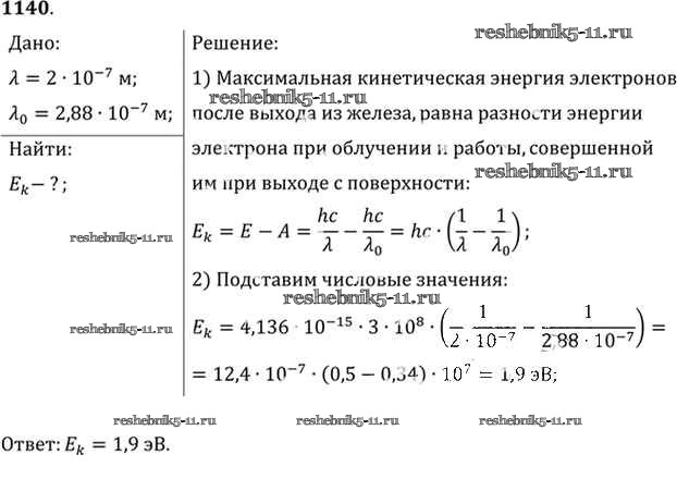Готовая домашняя работа с ответами по Физике за 10, 11 класс Рымкевич Задачник УМК Дрофа 2013 ФГОС - Задачи 1140