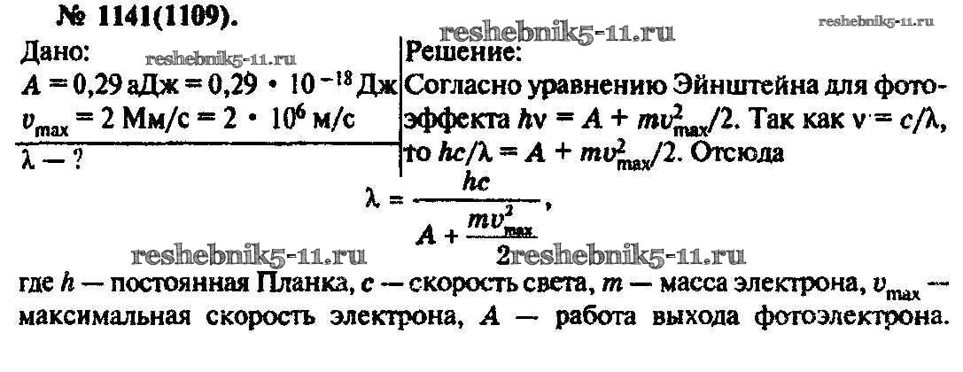 Физика за 10-11 класс Рымкевич Задачник УМК Дрофа задача 1141